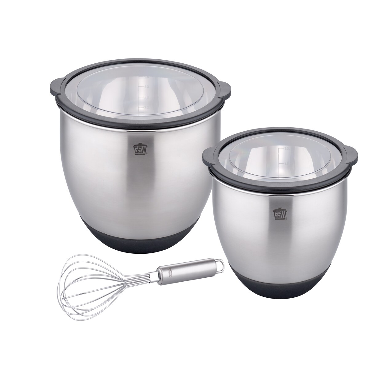 GSW Schüsselset 5-tlg (20 + 24 cm Schüssel + 1 Schneebesen) Primo mit luftdichtem Deckel