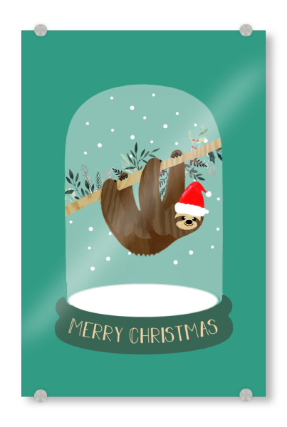 Acrylglasbild "Faultier Schneekugel" artboxONE - Typografie,Tiere,Weihnachten