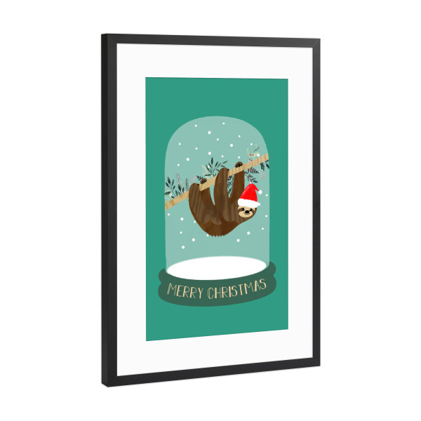 Poster mit Rahmen Schwarz (Metallic) "Faultier Schneekugel" artboxONE - Typografie,Tiere,Weihnachten