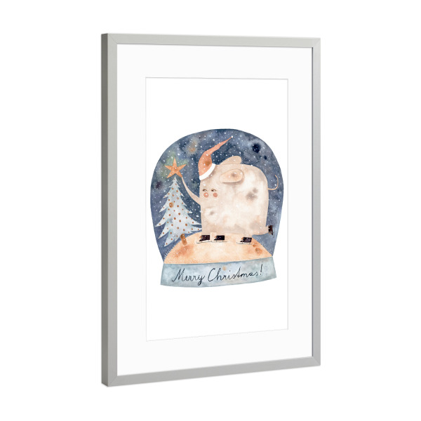 Poster mit Rahmen Silber "Voglhuber - Schneekugel" artboxONE - Für Kinder,Tiere,Weihnachten