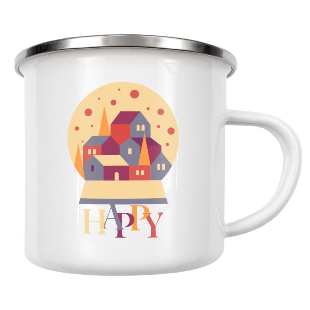 Emaille Tasse "Schneekugel im Kubismus-Stil blau" artboxONE - Für Kinder,Comic,Weihnachten,Für Mama,Für Papa