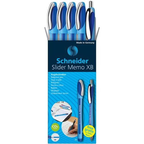 Schneider Slider Memo Kugelschreiber Blau Extra Breit 0.7 mm Nachfüllbar 4 Stück + 1 Slider Rave Gratis