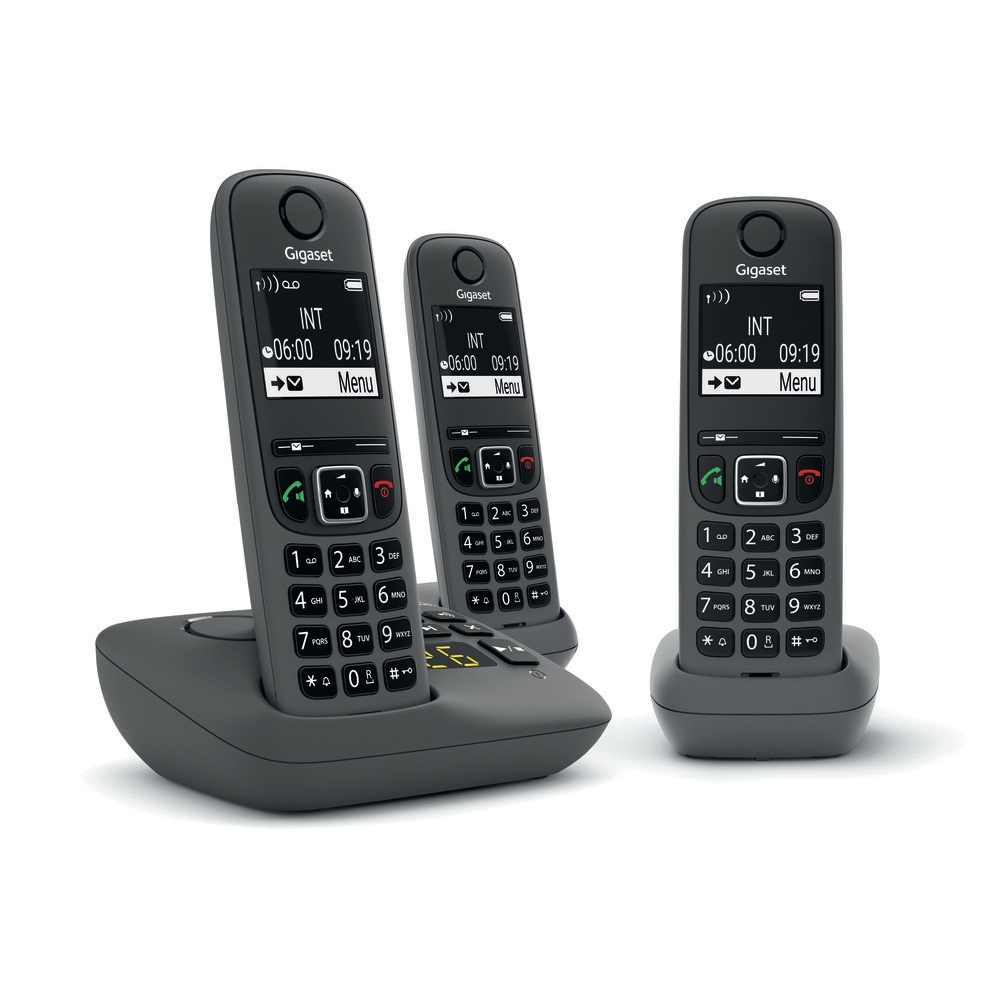 GIGASET AE 690A Trio anthrazit Schnurloses-Telefon (mit Anrufbeantworter, Freisprechen, bis zu 100 Telefonbucheinträge, 3 Mobilteile)