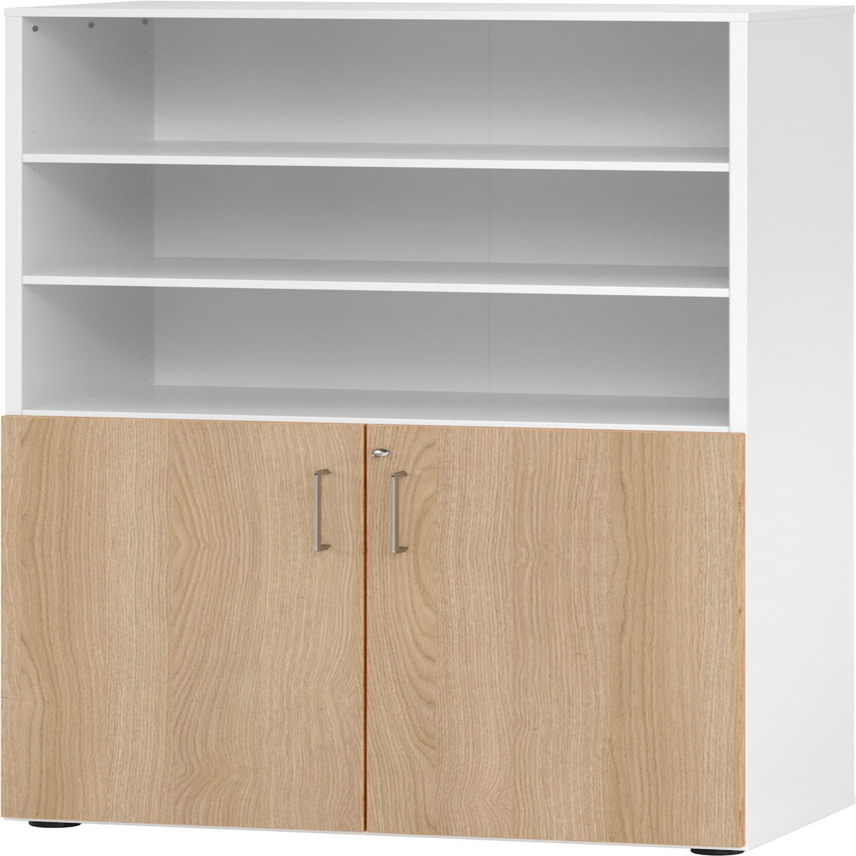 bümö Aktenregal & Schrank abschließbar, Büroschrank Regal Kombination Holz 80cm breit in Weiß/Asteiche - abschließbarer Schrank für's Büro &