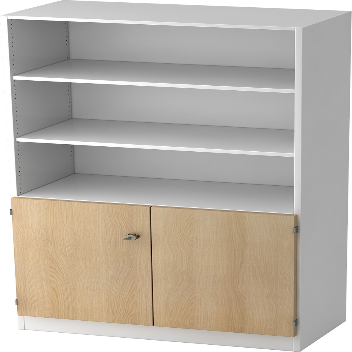 bümö Aktenregal & Schrank abschließbar, Büroschrank Regal Kombination Holz 80cm breit in Weiß/Grau - abschließbarer Schrank für's Büro &