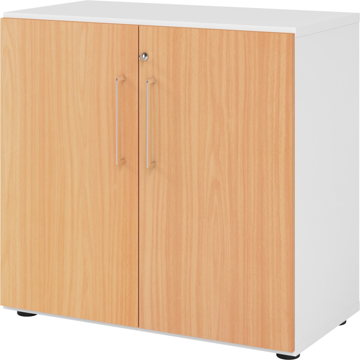 bümö Aktenschrank abschließbar, Büroschrank Holz 80cm breit in Weiß/Buche - abschließbarer Schrank mit Aktenregal für's Büro & Arbeitszimmer, Büro
