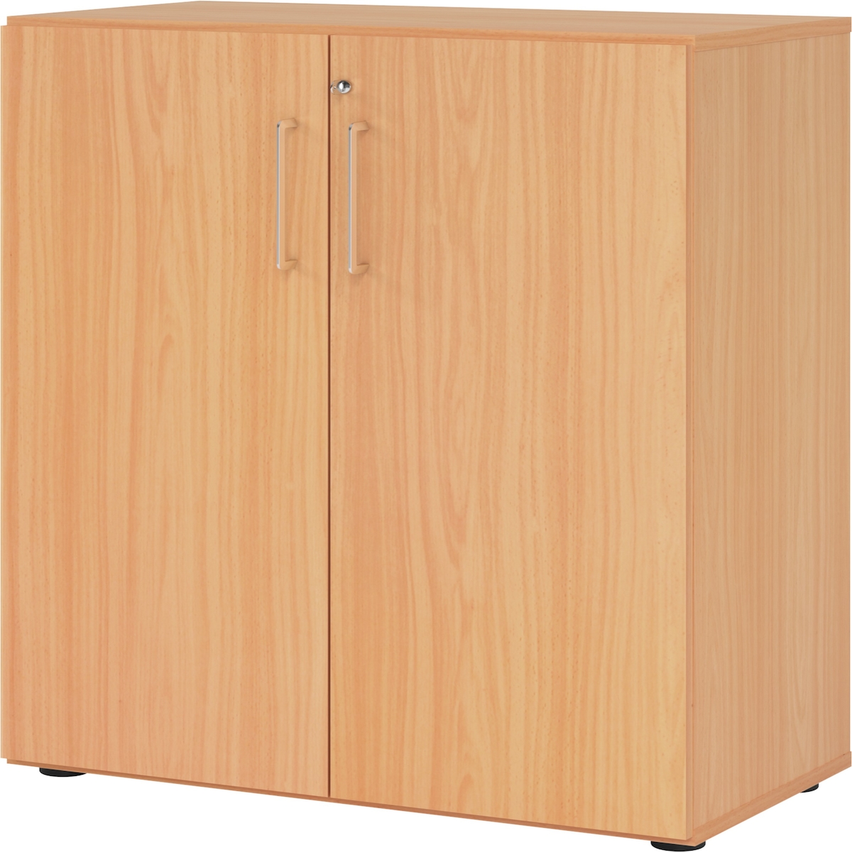 bümö office Aktenschrank abschließbar, Büroschrank klein aus FSC-Holz, 80cm breit in Buche/Silber - abschließbarer Schrank, Büroschrank abschließbar,