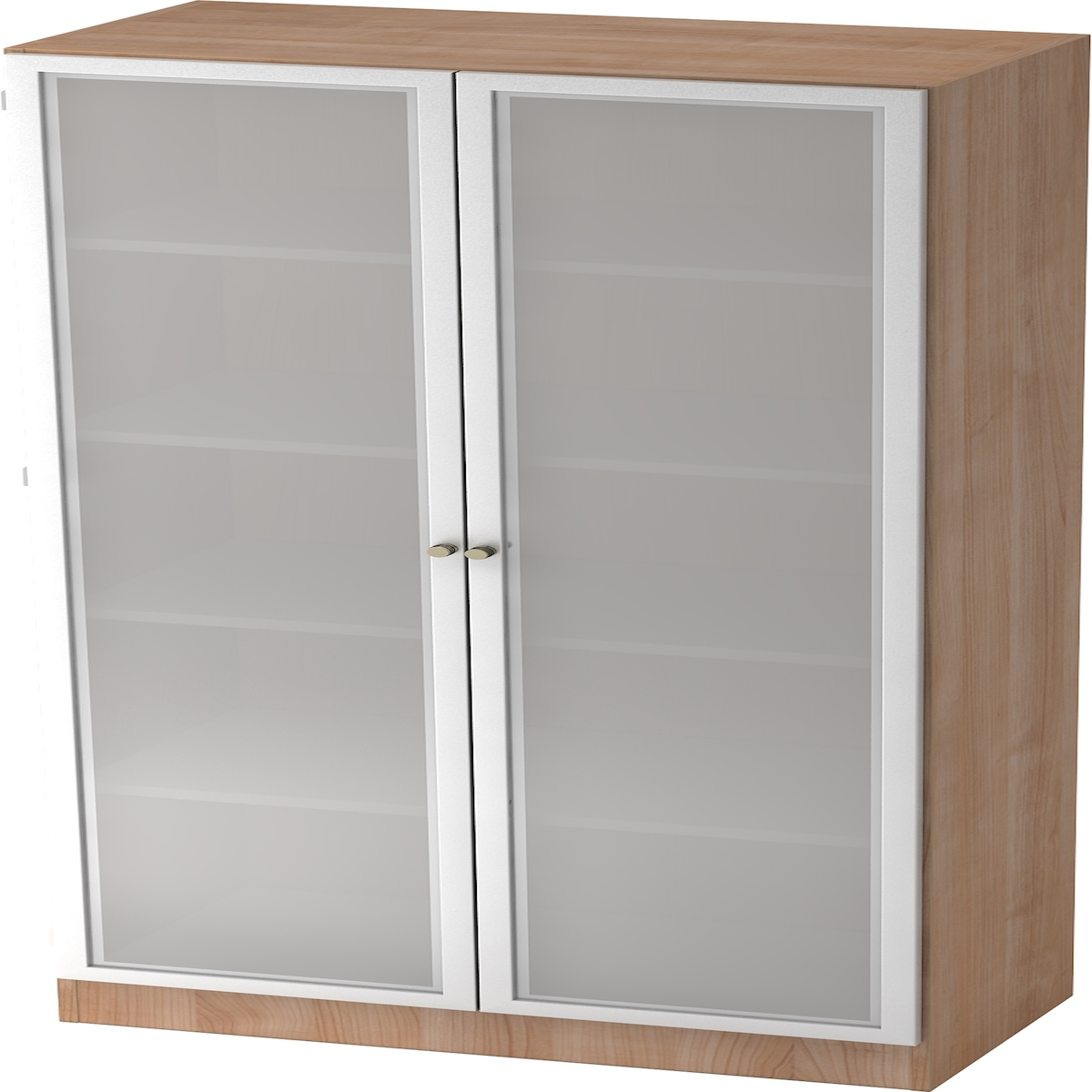 bümö office Aktenschrank mit Milchglastüren, Büroschrank groß aus FSC-Holz, 80cm breit in Grau/Silber - Schrank, Büroschrank, Büro Möbel Schrank