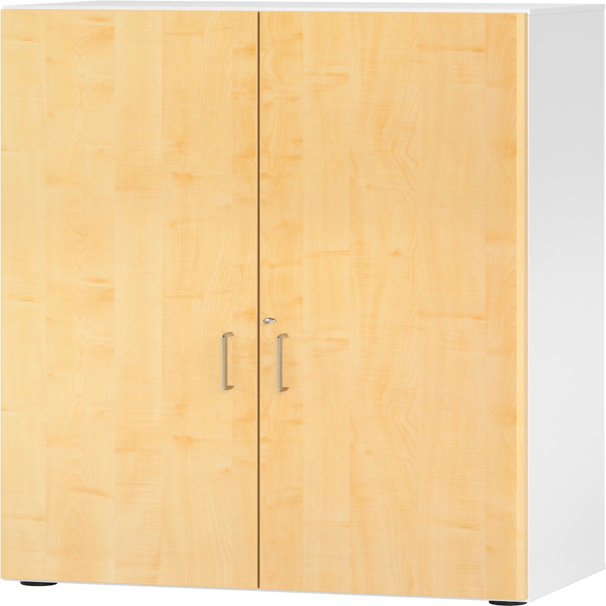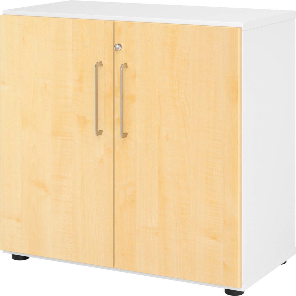 bümö Aktenschrank abschließbar, Büroschrank Holz 80cm breit in Weiß/Ahorn - abschließbarer Schrank mit Aktenregal für's Büro & Arbeitszimmer, Büro