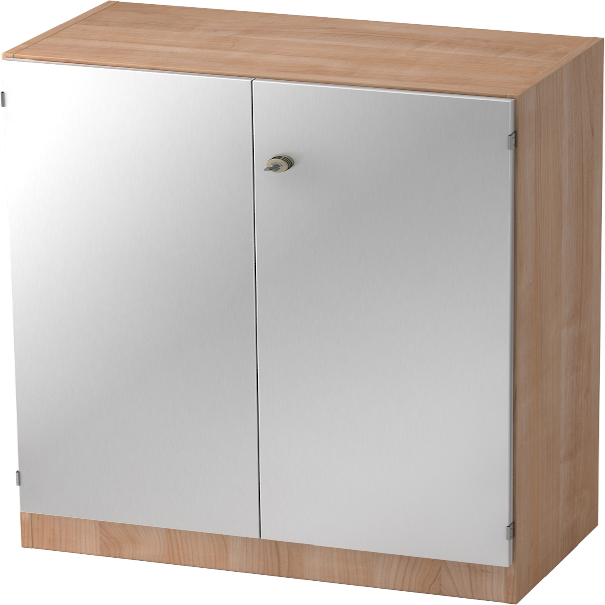bümö Mehrzweckschrank 80cm breit, Aktenschrank o. Schuhschrank hoch, Regal Schrank-Kombi, Küchenschrank in Buche/Silber aus Holz, Vorratsschrank &