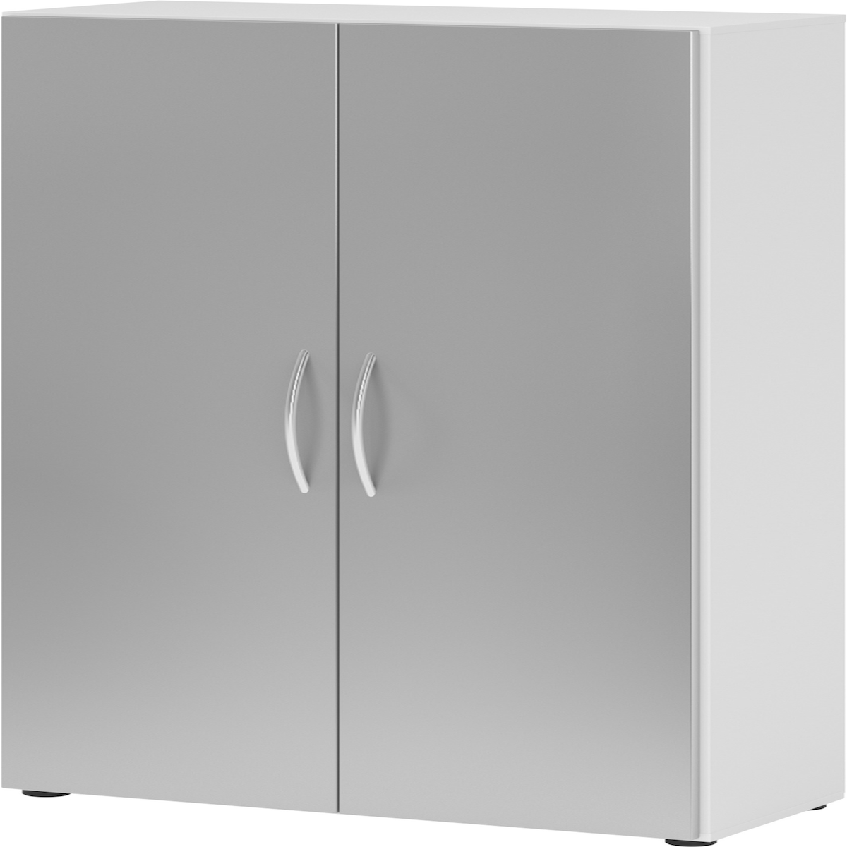 bümö Mehrzweckschrank 80cm breit, Aktenschrank o. Schuhschrank hoch, Regal Schrank-Kombi, Küchenschrank in Weiß/Silber aus Holz, Vorratsschrank &