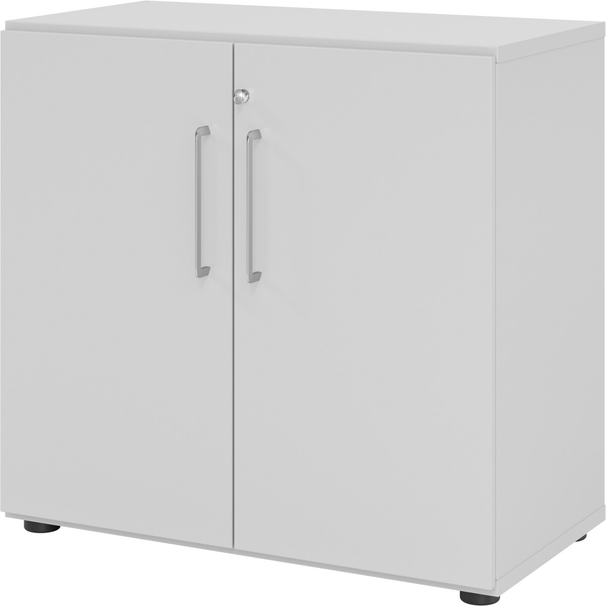bümö office Aktenschrank abschließbar, Büroschrank groß aus FSC-Holz, 80cm breit in Weiß/Silber - abschließbarer Schrank, Büroschrank abschließbar,
