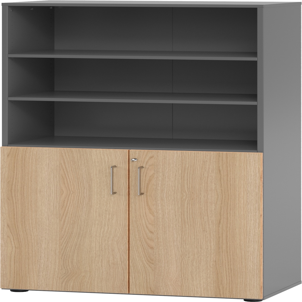 bümö Aktenregal & Schrank abschließbar, Büroschrank Regal Kombination Holz 80cm breit in Graphit/Eiche - abschließbarer Schrank für's Büro &