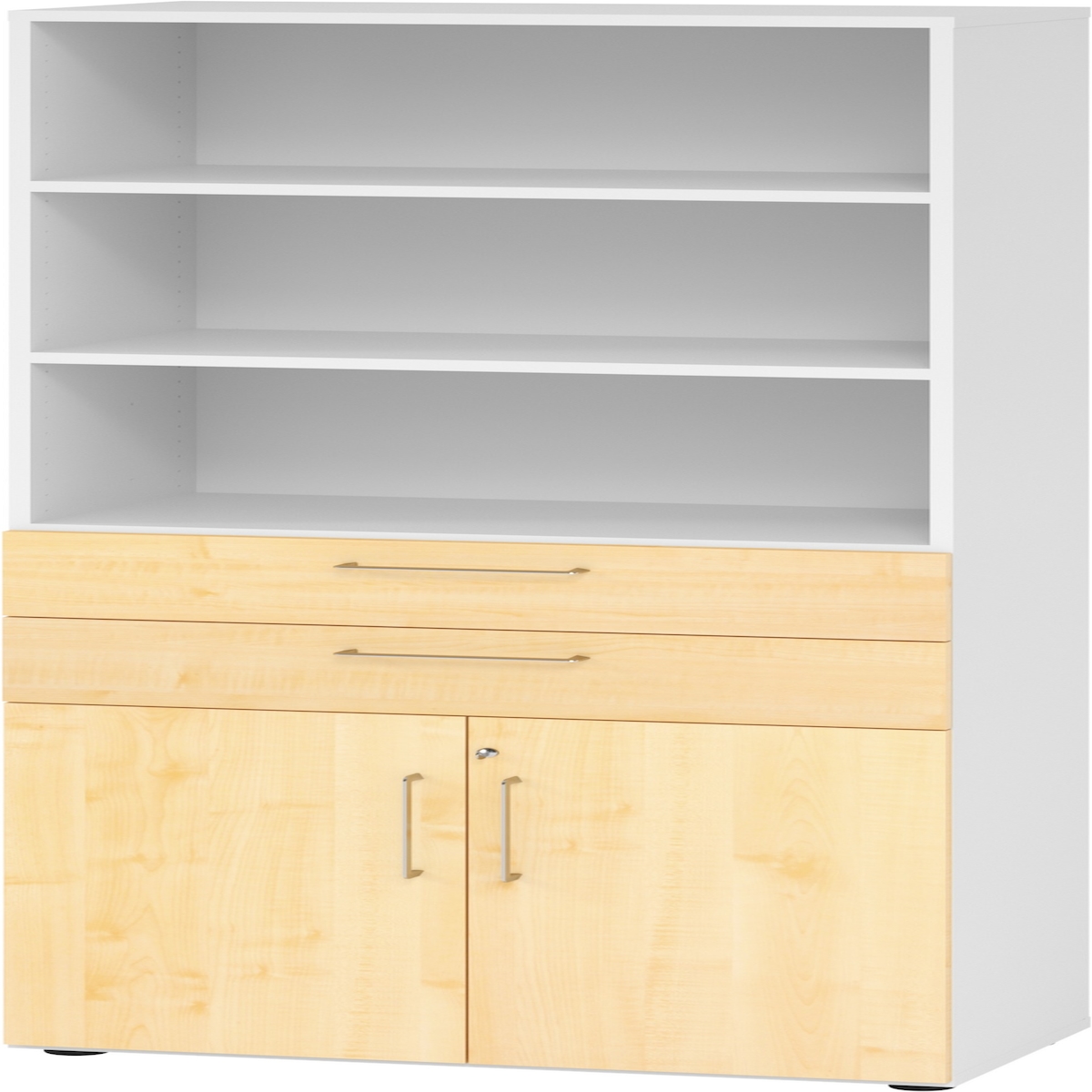 bümö Aktenregal & Schrank abschließbar, Büroschrank Regal & Schubladen Kombination Holz 80cm breit in weiß - Schrank für's Büro & Arbeitszimmer, Büro