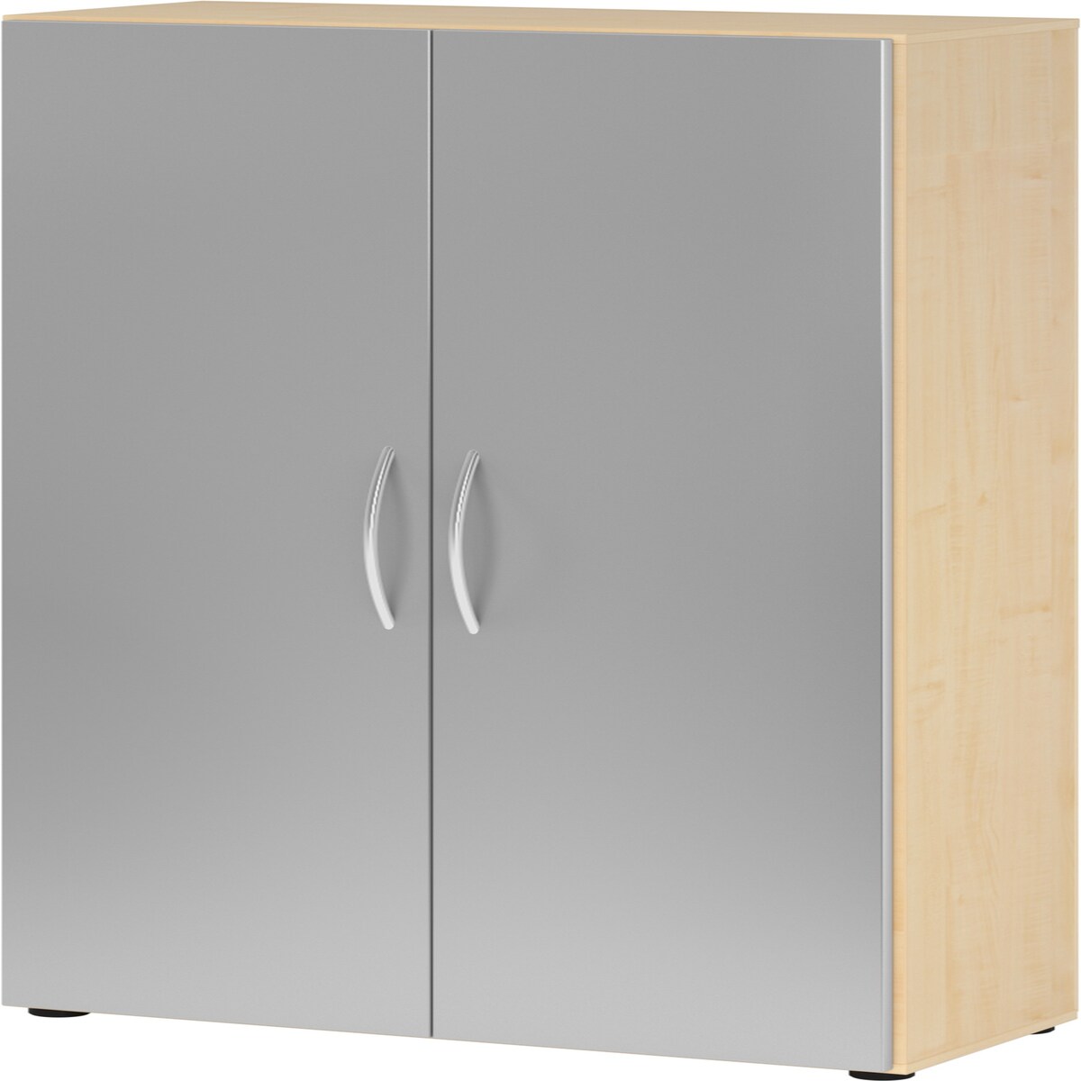 bümö office Aktenschrank abschließbar, Büroschrank klein aus FSC-Holz, 80cm breit in Ahorn/Silber - abschließbarer Schrank, Büroschrank abschließbar,