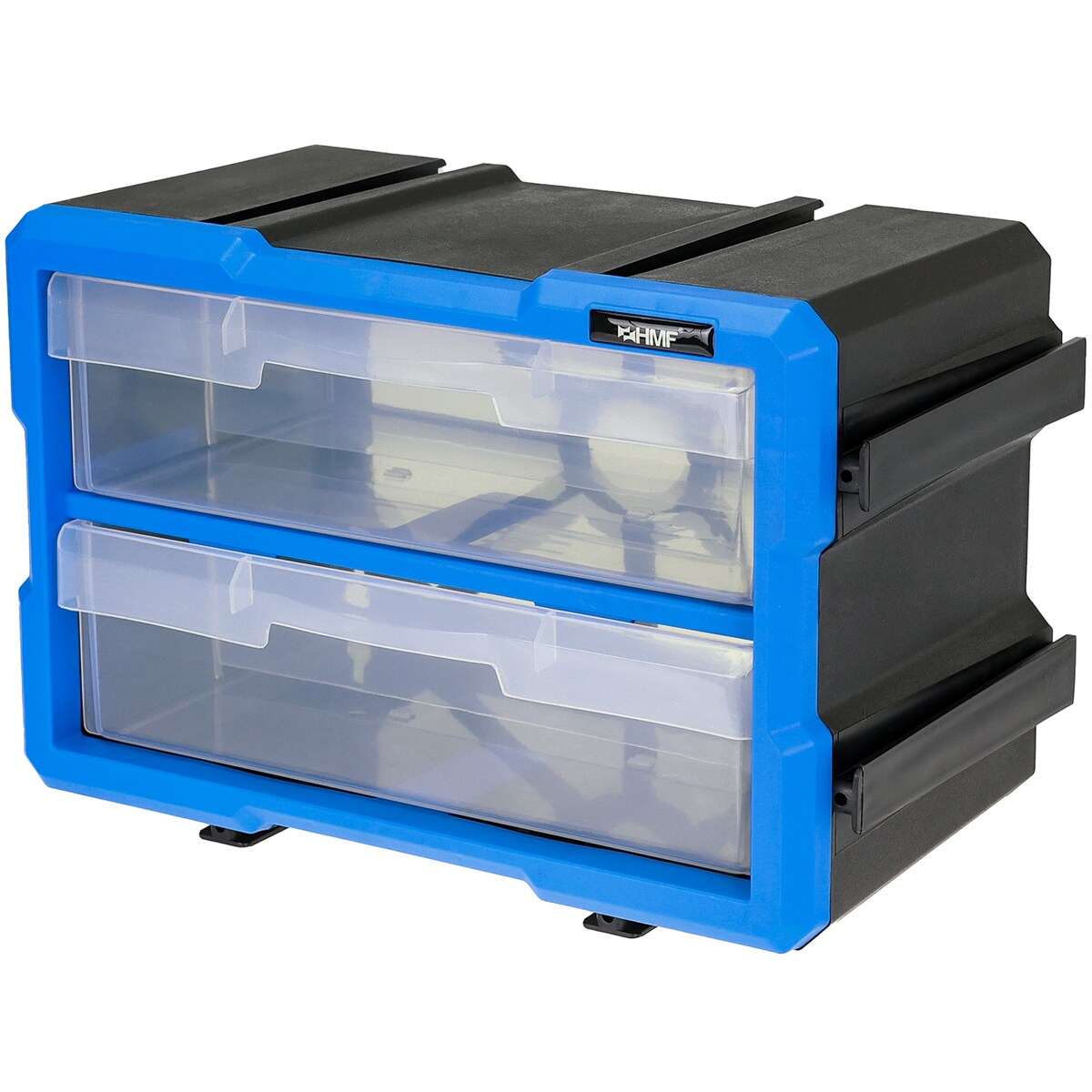 HMF Sortierbox für Kleinteile mit 2 Schubladen, erweiterbarer Sortimentskasten für Schrauben und Werkzeug, 4 Fächer, 29,5 x 19,5 x 16 cm, Blau-Schwarz