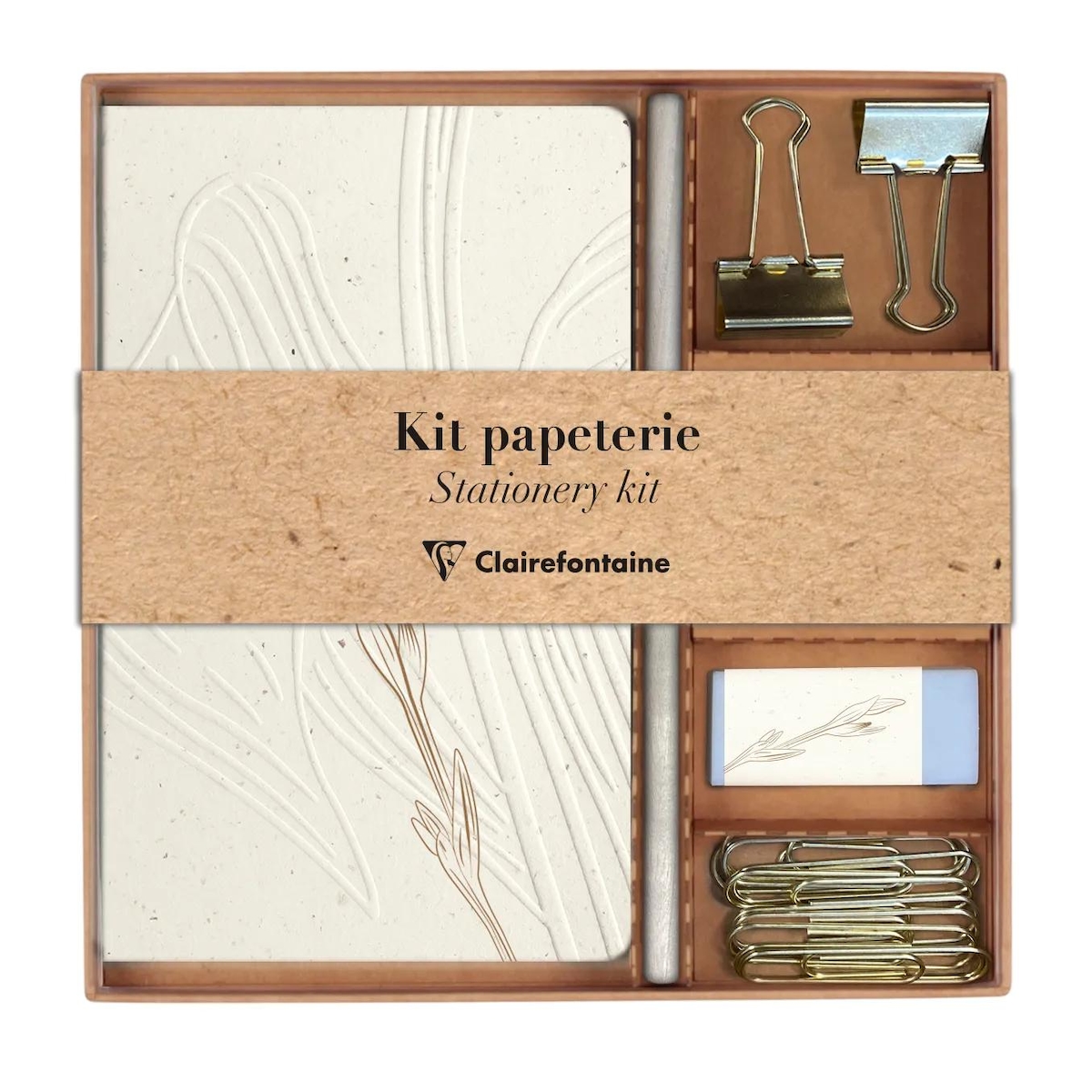 Clairefontaine 3x Tulip paper, Schreibset mit einem Notizbuch 11x17 cm 32 Bl liniert, einem Bleistift, 2 Briefklemmern - 813074C