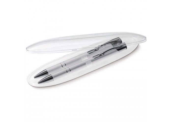 Schreibset / mit chromglänzenden Kugelscheiber und Rollerball im Geschenketui