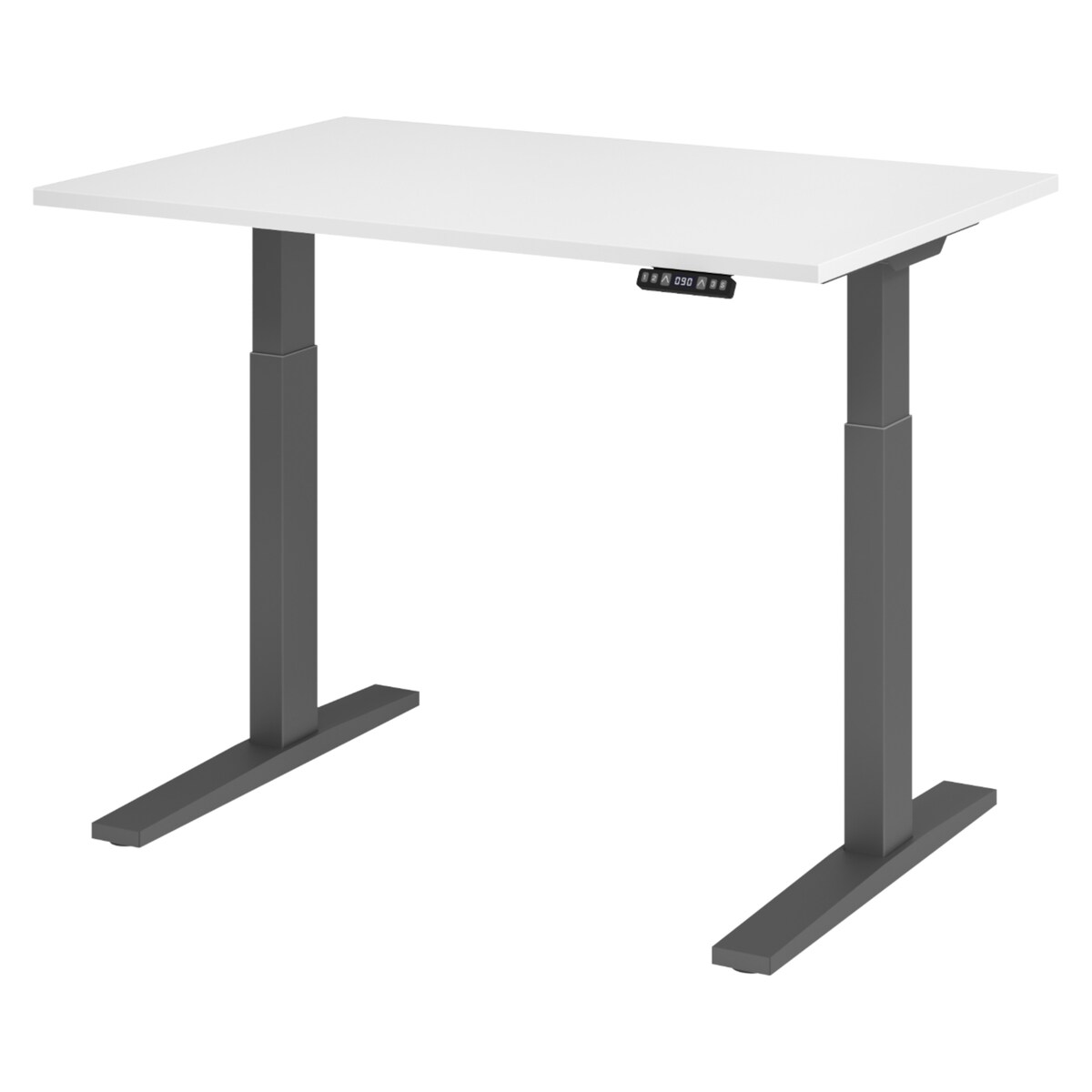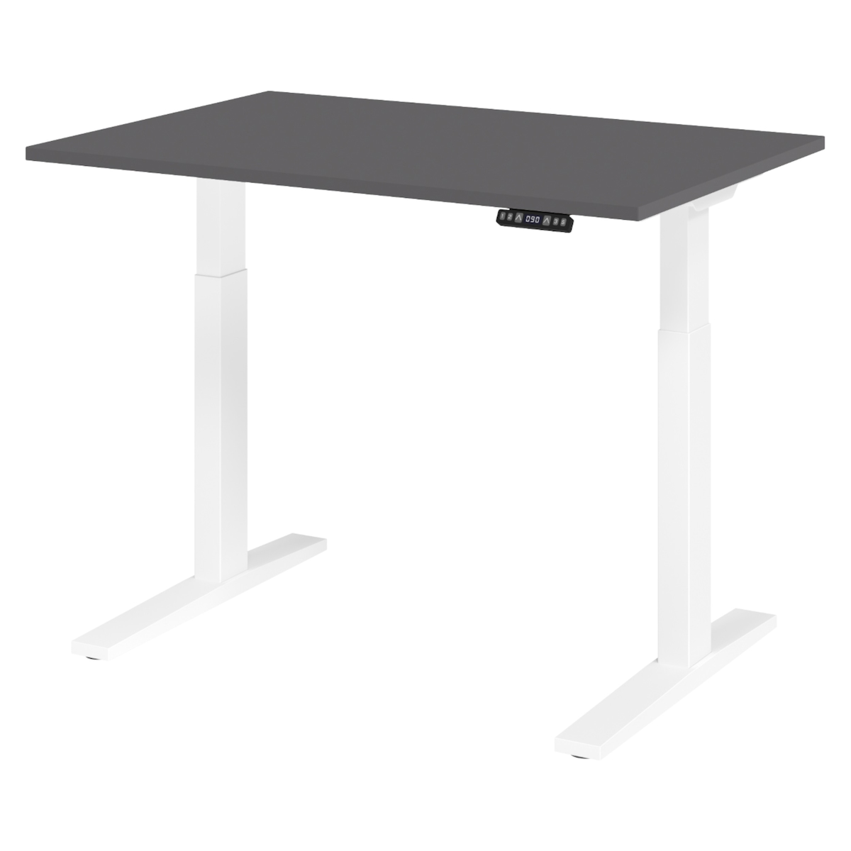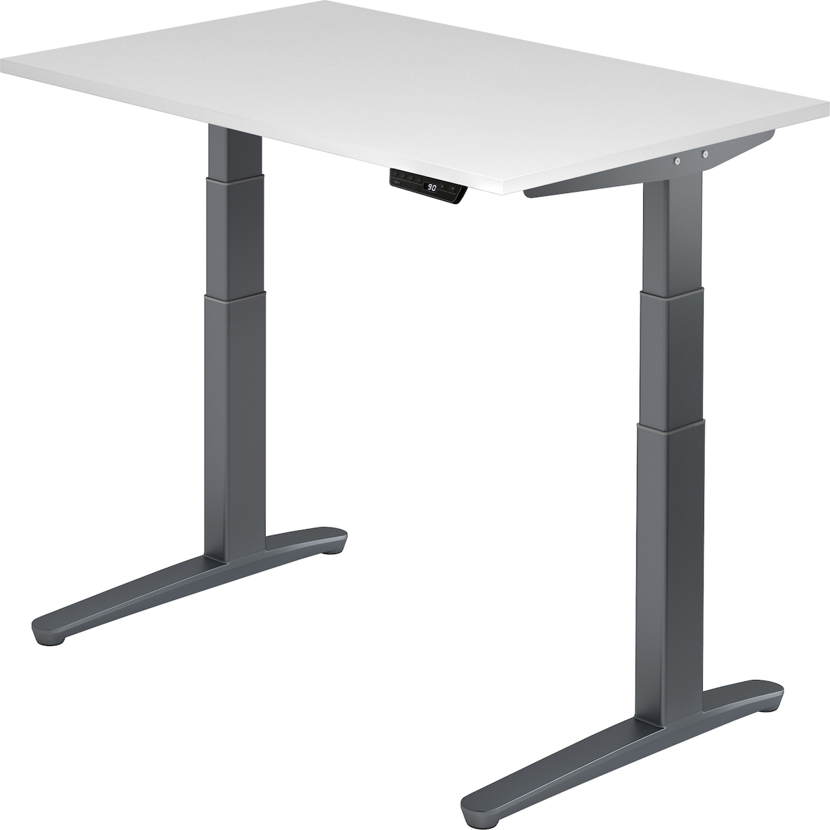 bümö elektrisch höhenverstellbarer Schreibtisch 120x80 cm in weiß, Gestell graphit - Schreibtisch höhenverstellbar elektrisch mit Memory-Steuerung,