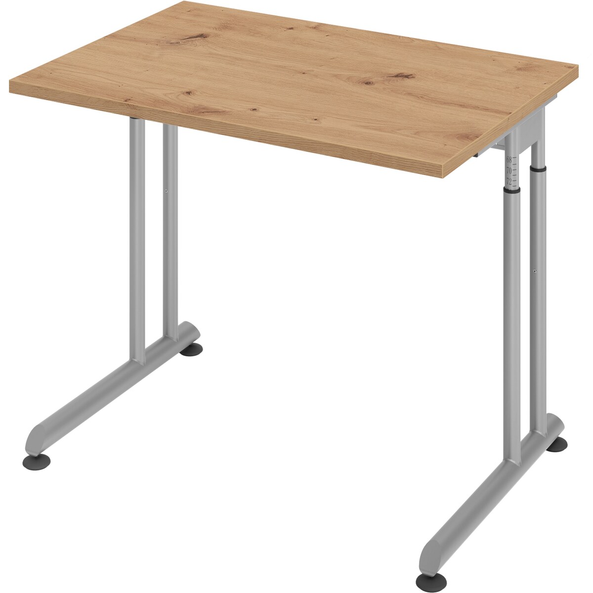 Büro Schreibtisch 120x80 cm Modell ZS12 mechanische Höheneinstellung E = Eiche-Silber-ohne Seitenblenden
