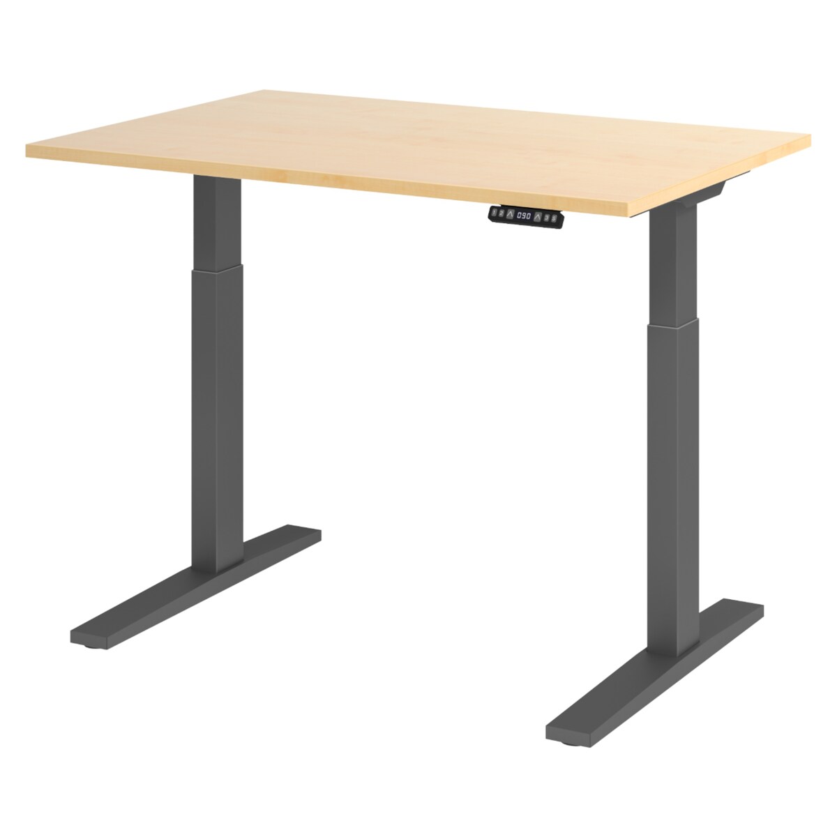 bümö elektrisch höhenverstellbarer Schreibtisch Ahorn 120x80 cm, Gestell: Graphit - Büroschreibtisch höhenverstellbar elektrisch, elektrischer