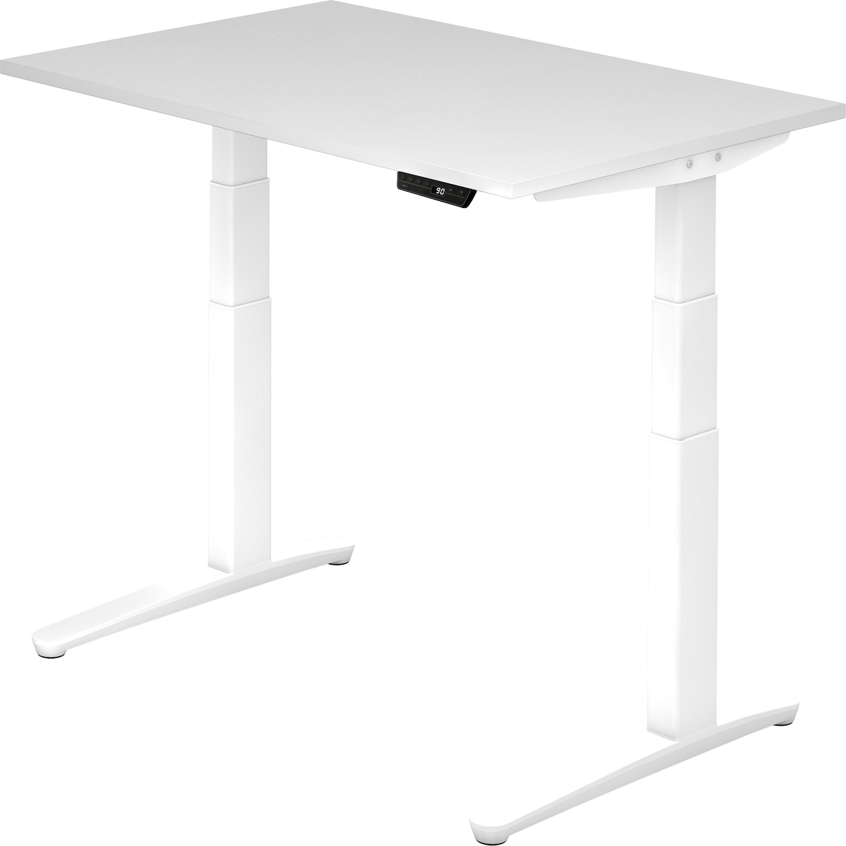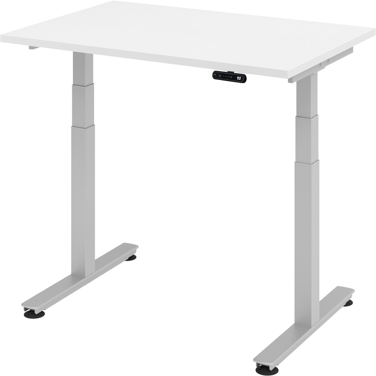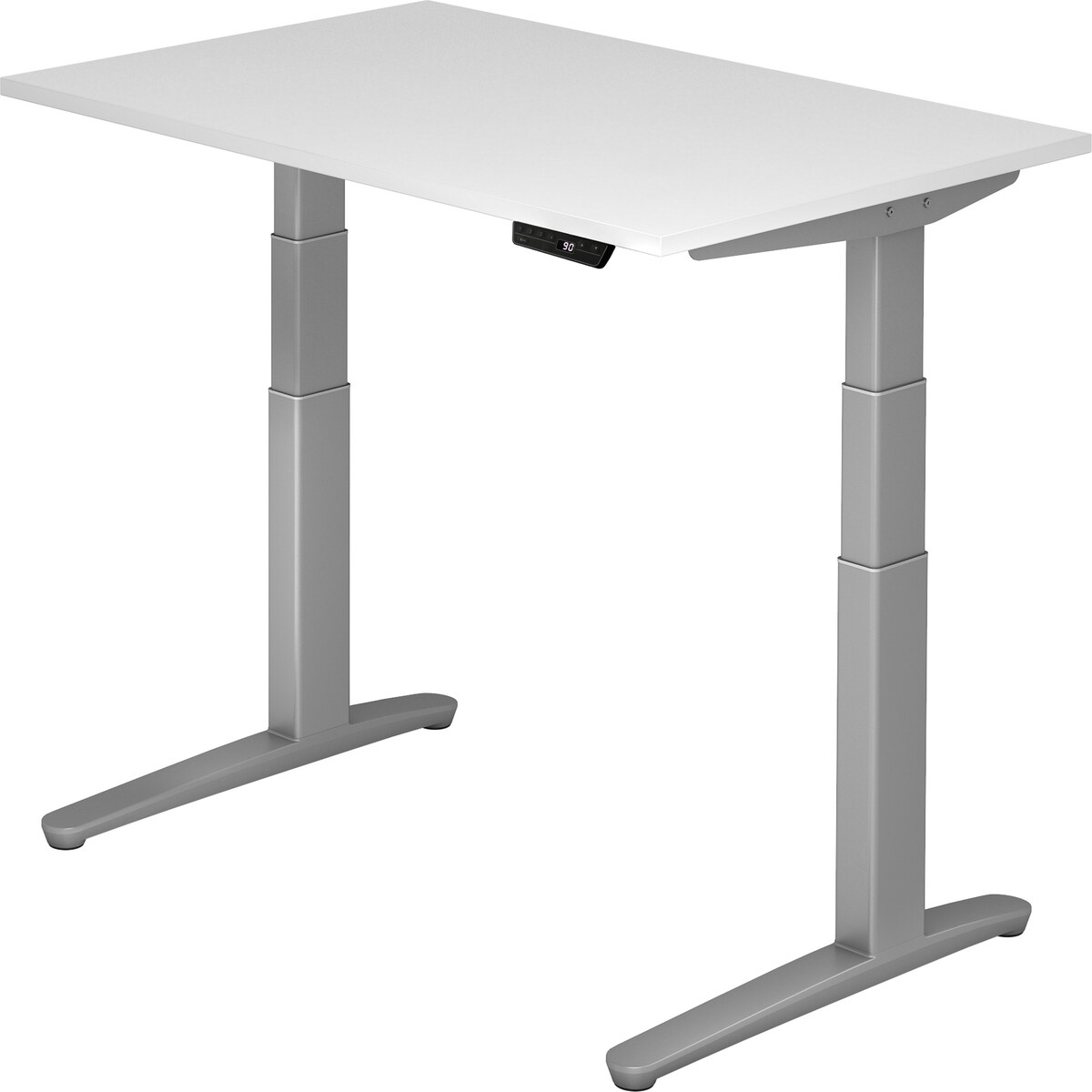 bümö elektrisch höhenverstellbarer Schreibtisch 120x80 cm in weiß, Gestell silber - Schreibtisch höhenverstellbar elektrisch mit Memory-Steuerung,