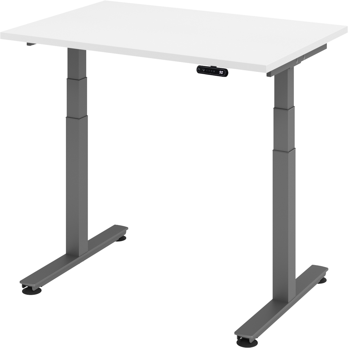 bümö elektrisch höhenverstellbarer Schreibtisch 120x80 cm in weiß, Gestell graphit mit Memory-Steuerung, elektrischer Bürotisch höhenverstellbar
