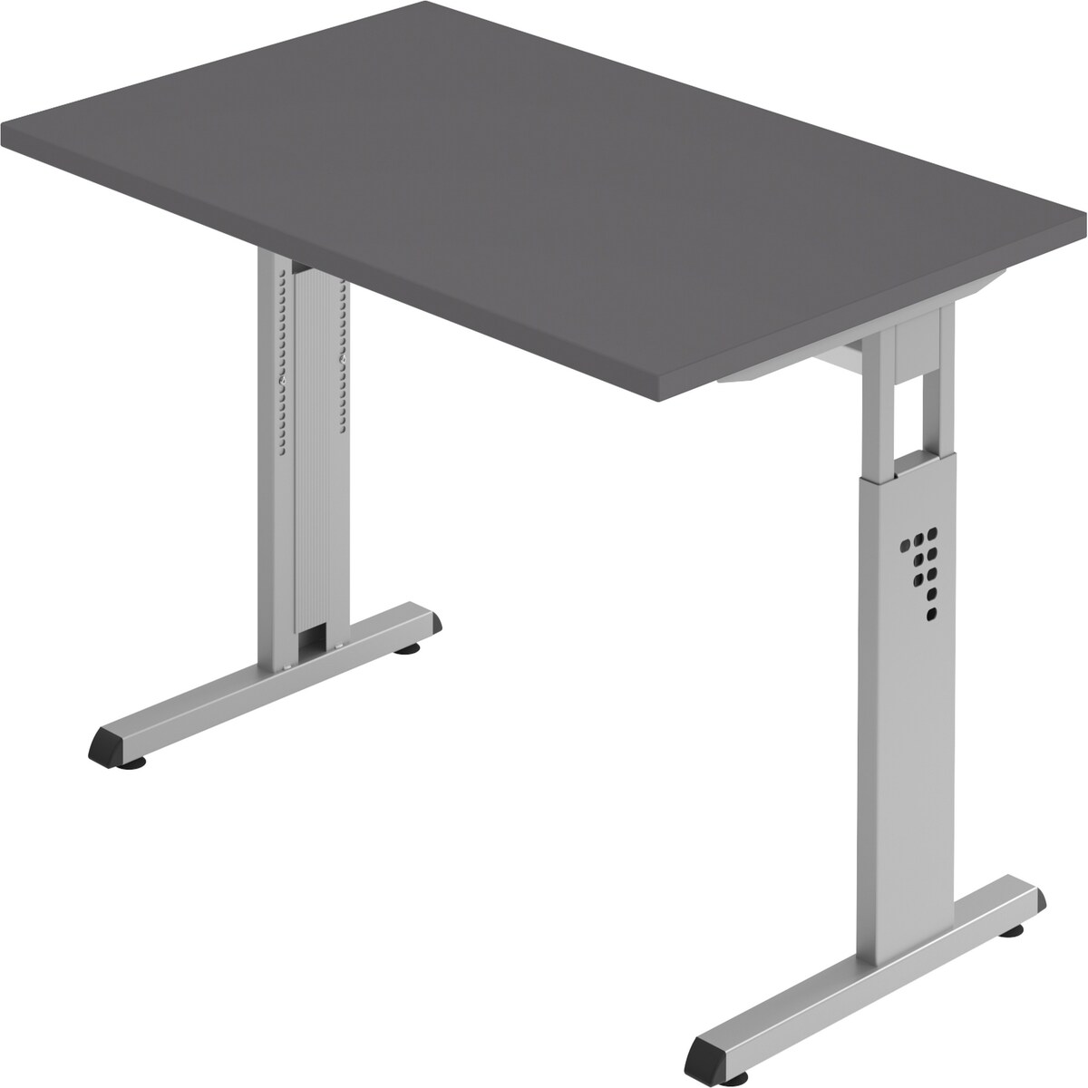 bümö höhenverstellbarer Schreibtisch O-Serie 120x80 cm in Graphit, Gestell in Silber - PC Tisch klein für's Büro manuell höhenverstellbar,