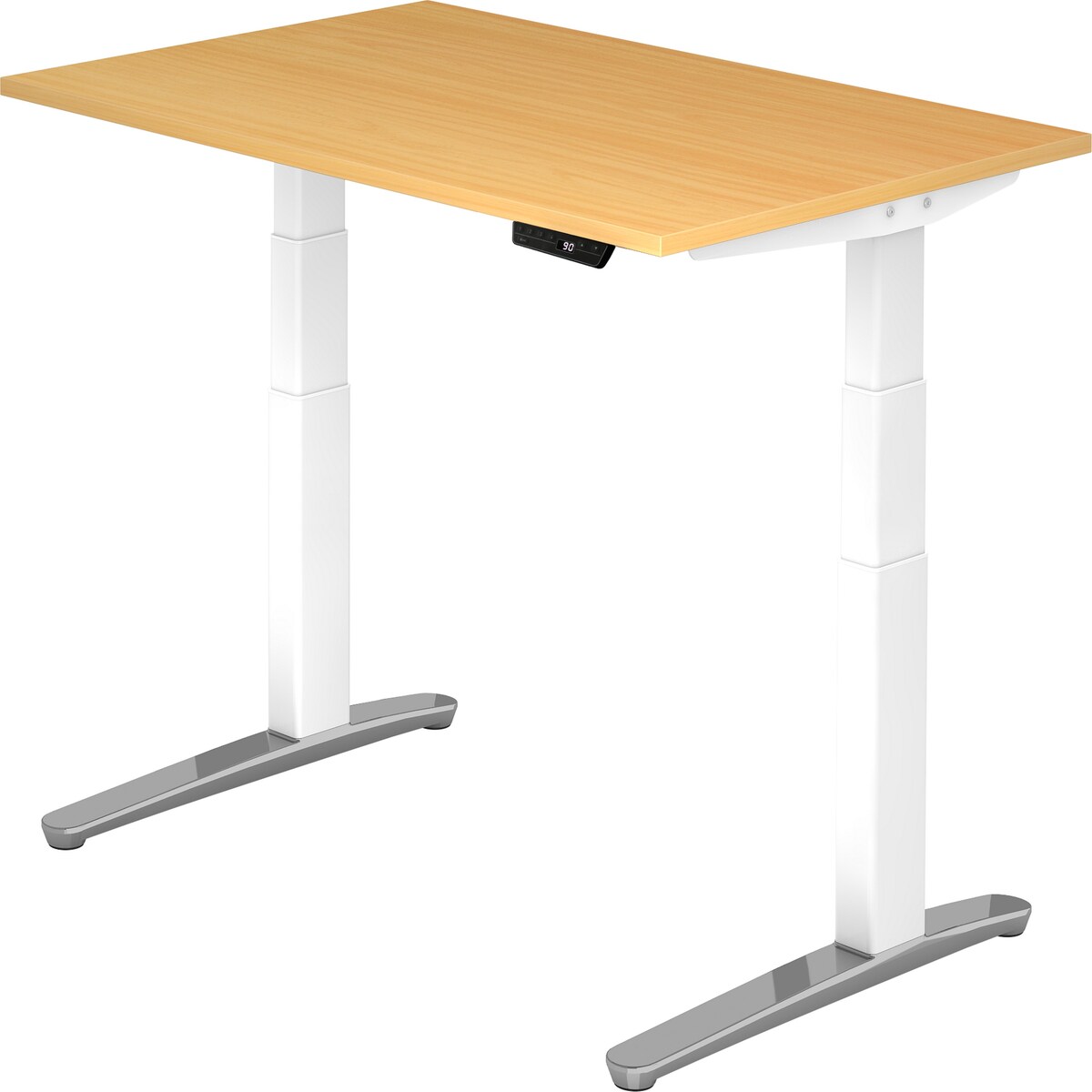bümö elektrisch höhenverstellbarer Schreibtisch Buche 120x80 cm, Gestell: Silber - Büroschreibtisch höhenverstellbar elektrisch, elektrischer