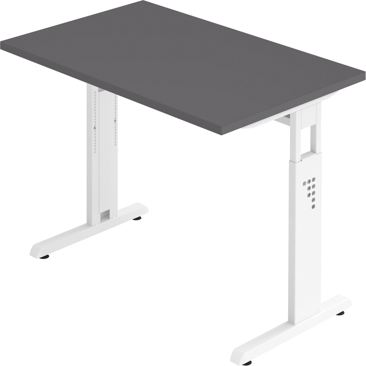 bümö höhenverstellbarer Schreibtisch O-Serie 120x80 cm in Graphit, Gestell in weiß - PC Tisch klein für's Büro manuell höhenverstellbar,