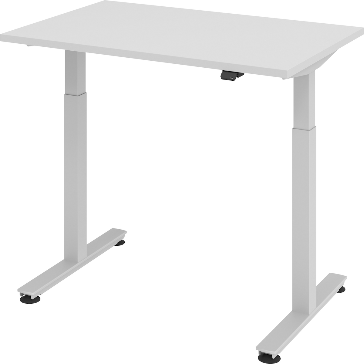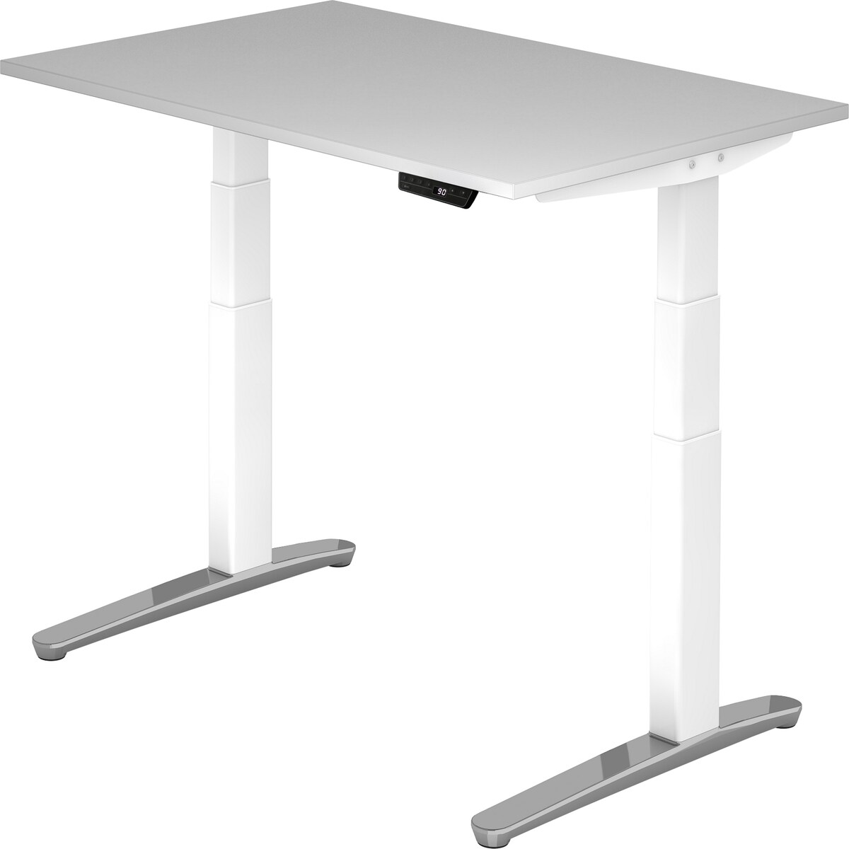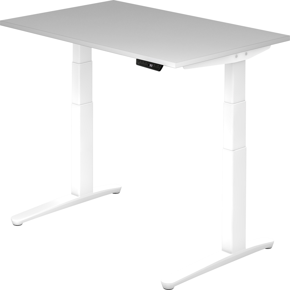 bümö elektrisch höhenverstellbarer Schreibtisch 120x80 cm in grau, Gestell silber - Schreibtisch höhenverstellbar elektrisch mit Memory-Steuerung,