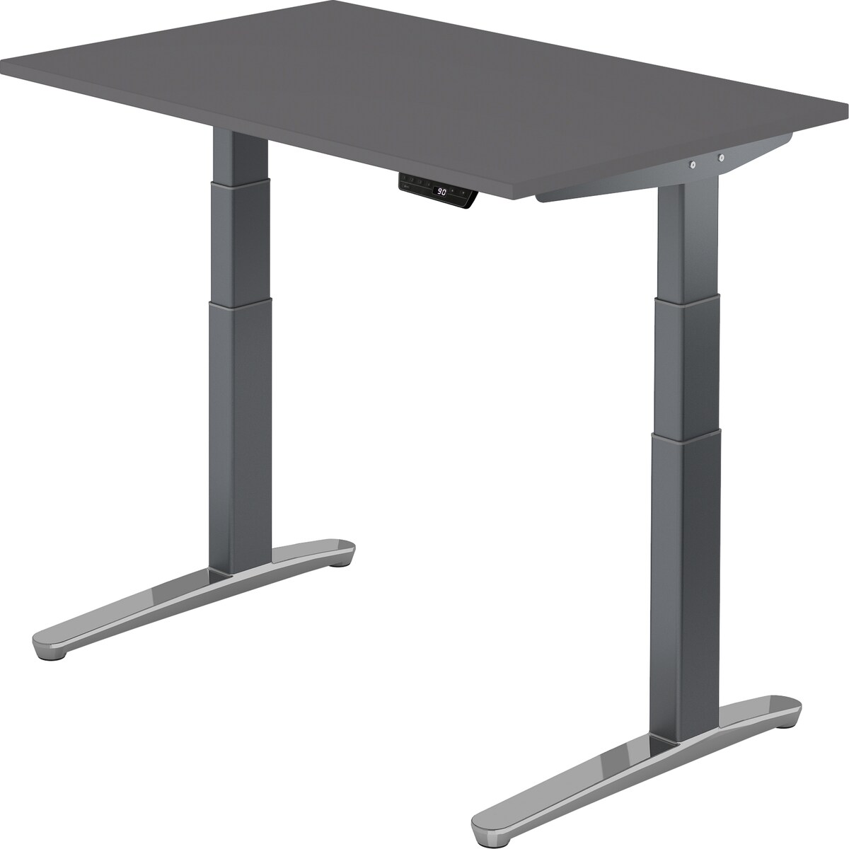 bümö elektrisch höhenverstellbarer Schreibtisch 120x80 cm in graphit, Gestell graphit mit Memory-Steuerung, elektrischer Bürotisch höhenverstellbar
