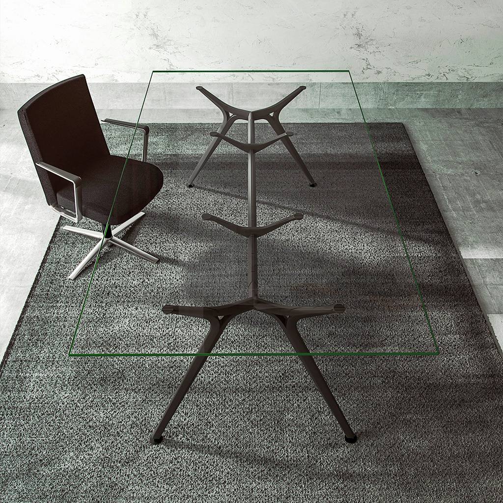 Design Schreibtisch Arkitek mit Glasplatte BxHxT: 160 x 74,5 x 80 cm | Aluminium / Glas in schwarz / weiß | FSC | Toro | Aluminium/Glas