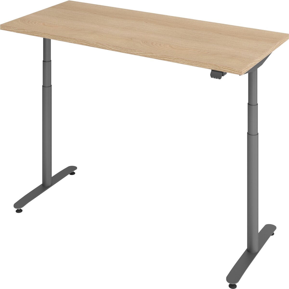 bümö höhenverstellbarer Schreibtisch 180 x 80 cm in Eiche, Gestell graphit - Höhenverstellbar Elektrisch Stehpult mit 3-fach Speicher, Computertisch,