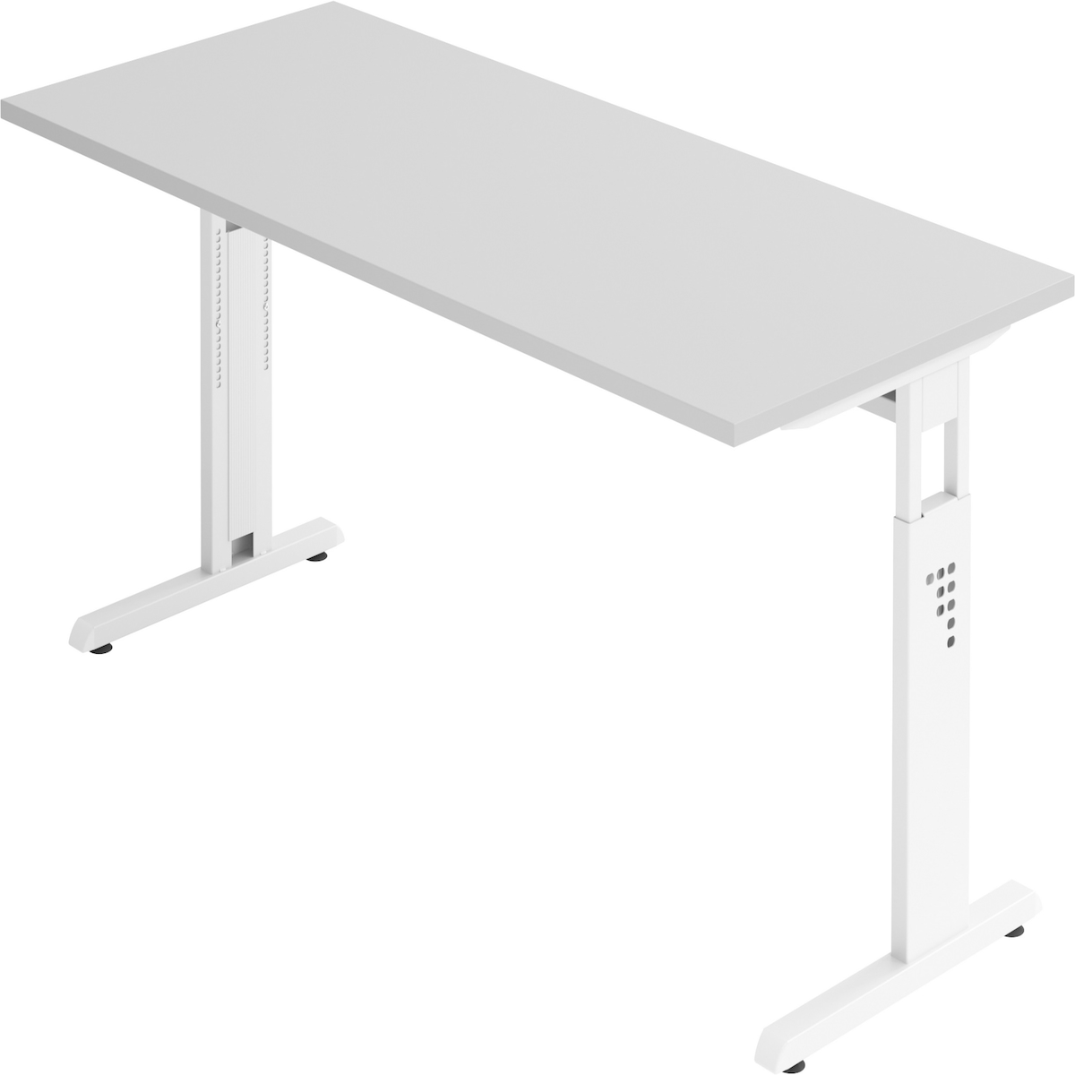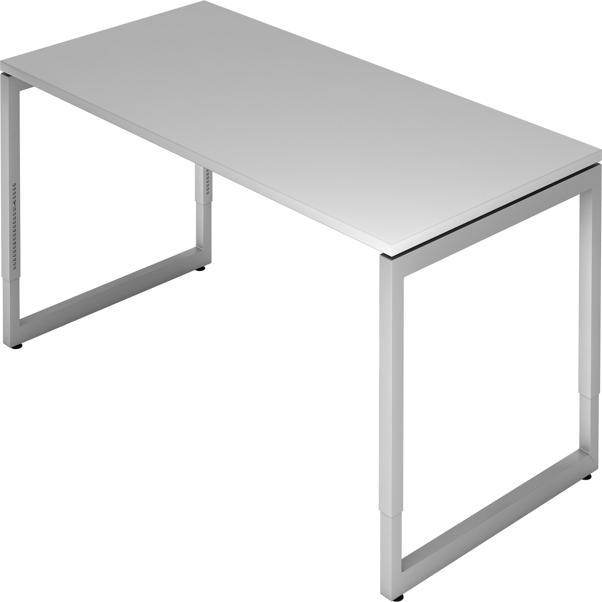 bümö höhenverstellbarer Schreibtisch O-Serie 180x80 cm in grau, Gestell in weiß - großer PC Tisch für's Büro manuell höhenverstellbar, Computertisch