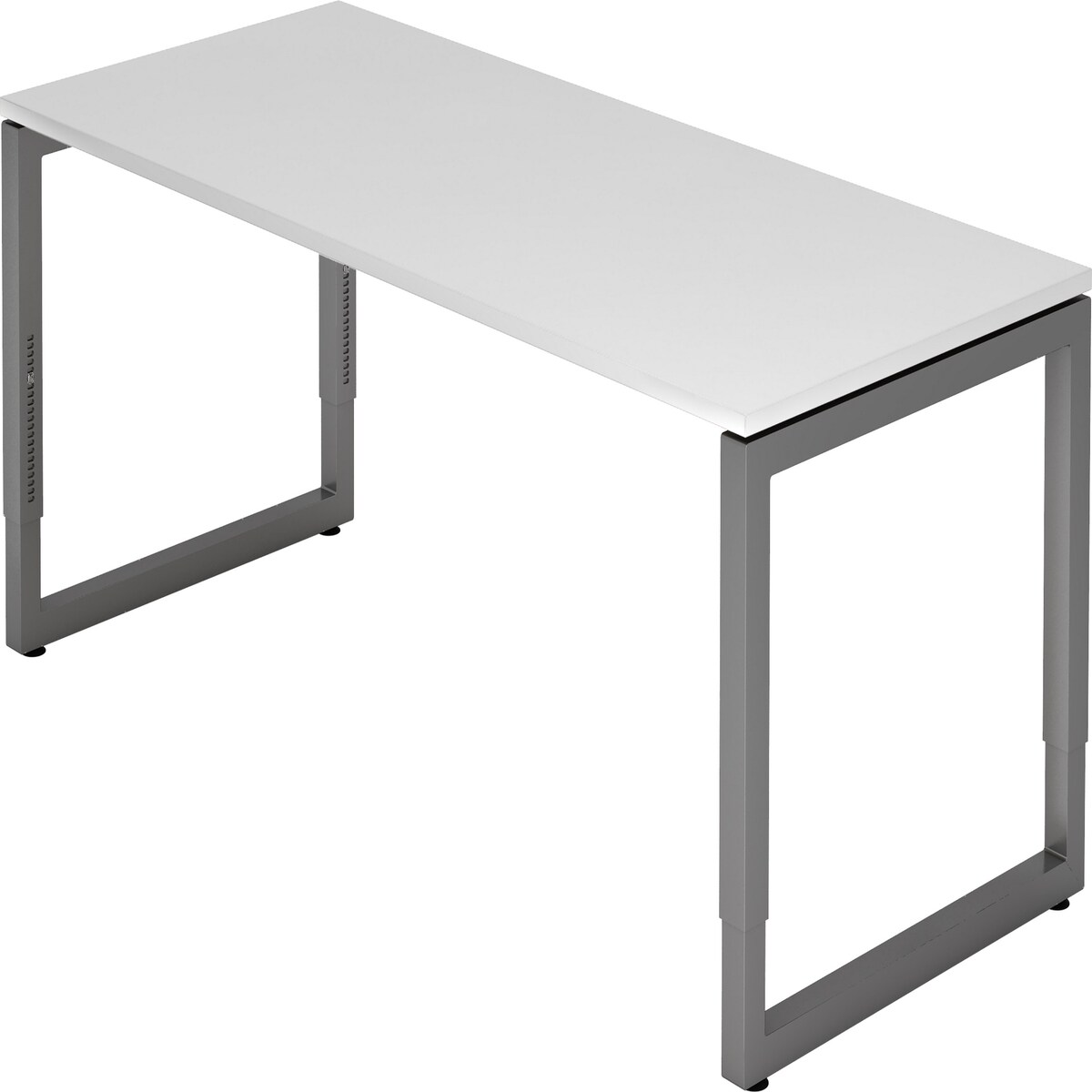 bümö höhenverstellbarer Schreibtisch O-Serie 180x80 cm in weiß, Gestell in Graphit - großer PC Tisch für's Büro manuell höhenverstellbar,
