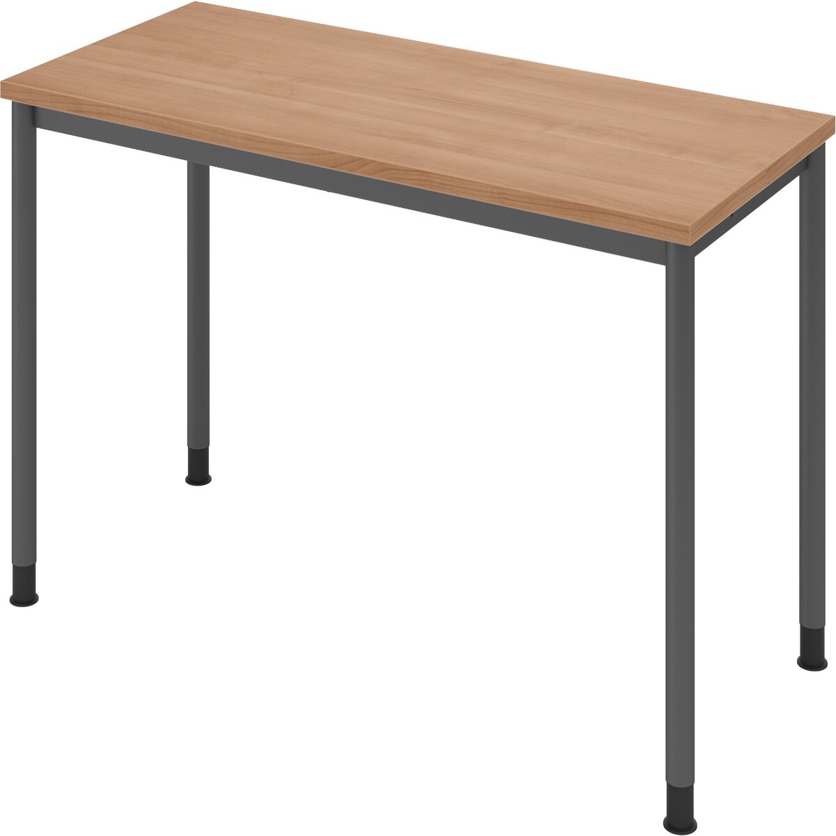 bümö höhenverstellbarer Schreibtisch O-Serie 120x80 cm in Nussbaum, Gestell in Graphit - PC Tisch klein für's Büro manuell höhenverstellbar,