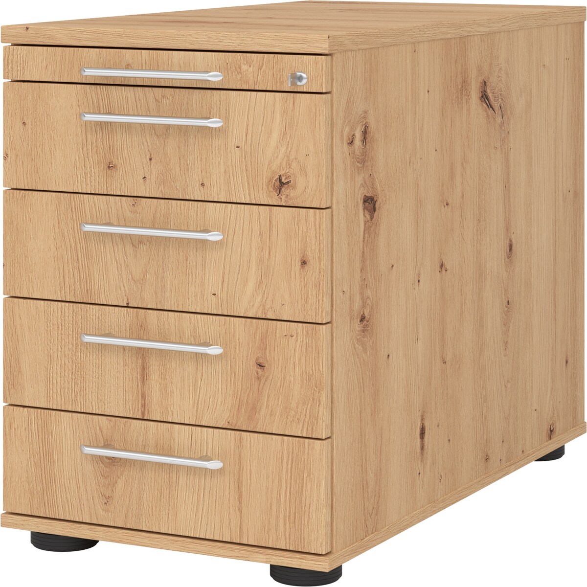 bümö Schreibtisch Schrank abschließbar, Schubladenschrank Holz in Asteiche, Container mit Schubladen - Schubladen Schrank Büro, Schreibtisch
