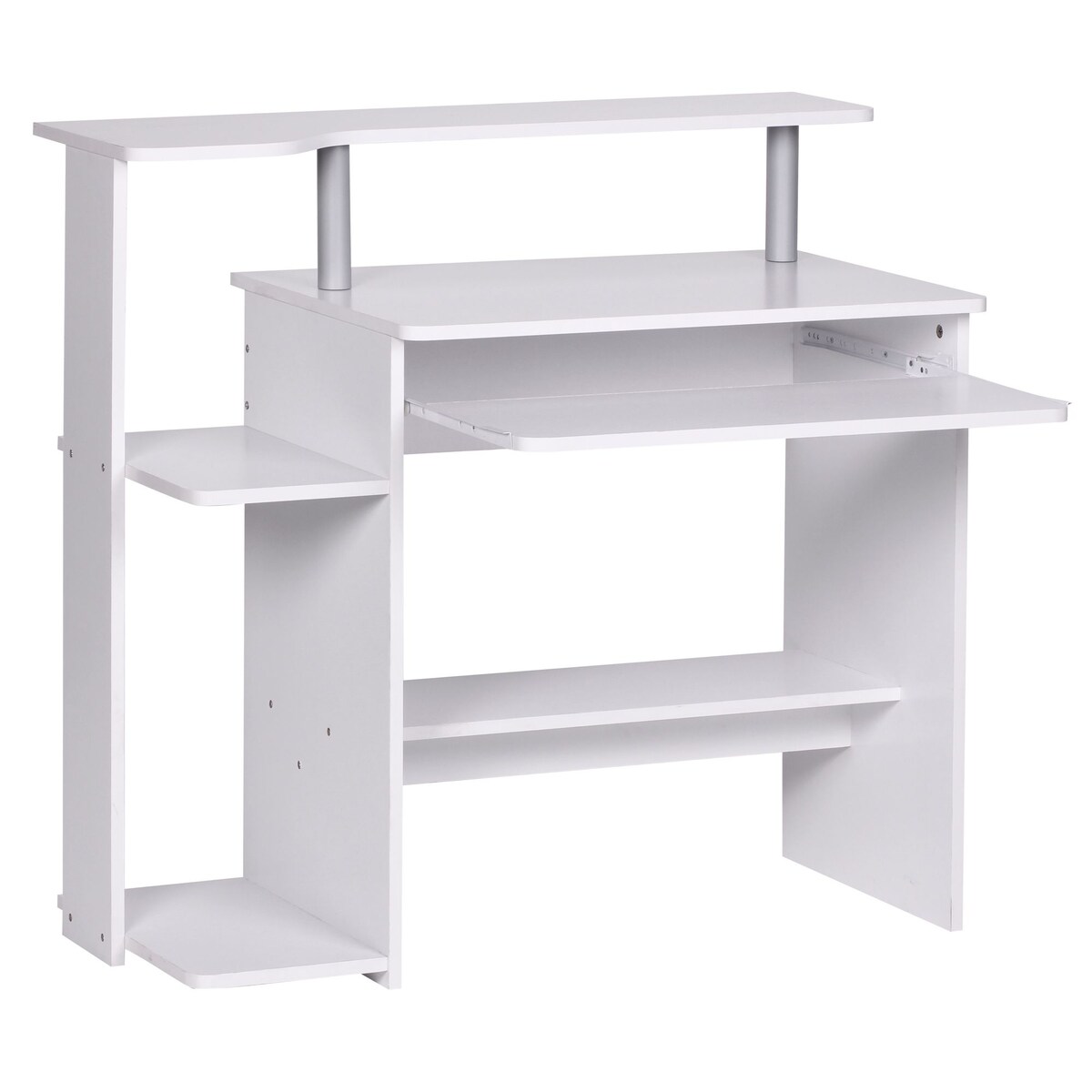 Computertisch WL1.153 Weiß 94x90,5x48,5 cm Laptop Tisch Modern mit Tastaturauszug | PC-Tisch mit Drucker-Ablage platzsparend | Schreibtisch für k...