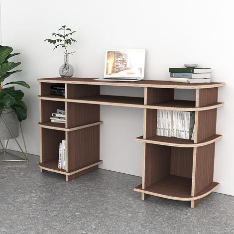Schreibtisch nach Maß "Allen" | Konfigurierbar | Nussbaum Multiplex | 140x77x45 cm