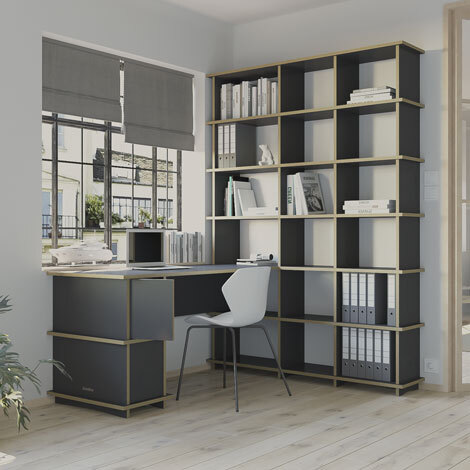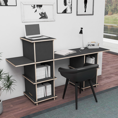 Schreibtisch nach Maß "Oficia" | Konfigurierbar | Schwarz Multiplex | 162x200x144 cm