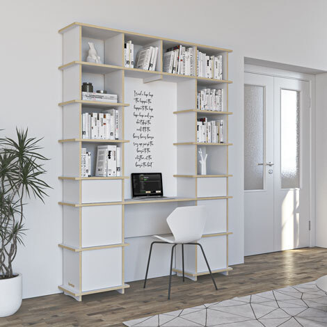 Schreibtisch nach Maß "Fridel" | Konfigurierbar | Weiß Multiplex | 160x220x35 cm