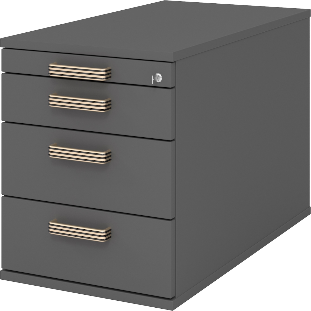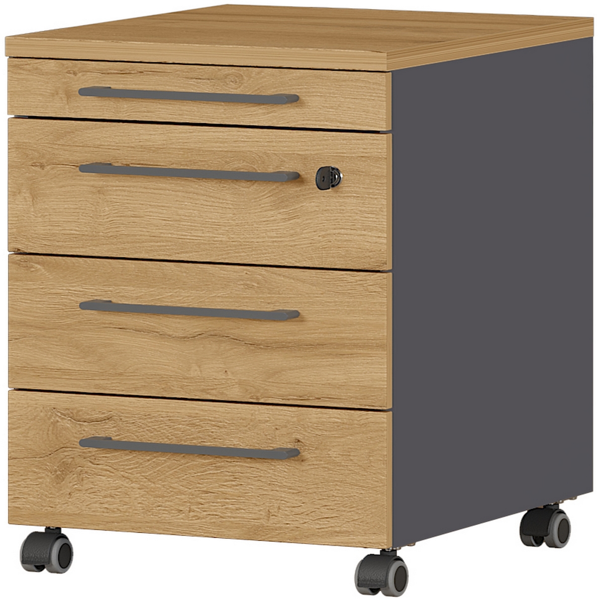 bümö Andratx Rollcontainer mit Schubladen, Container abschließbar aus Holz in Graphit-Eiche - Rollwagen für's Büro als Schreibtisch Unterschrank,