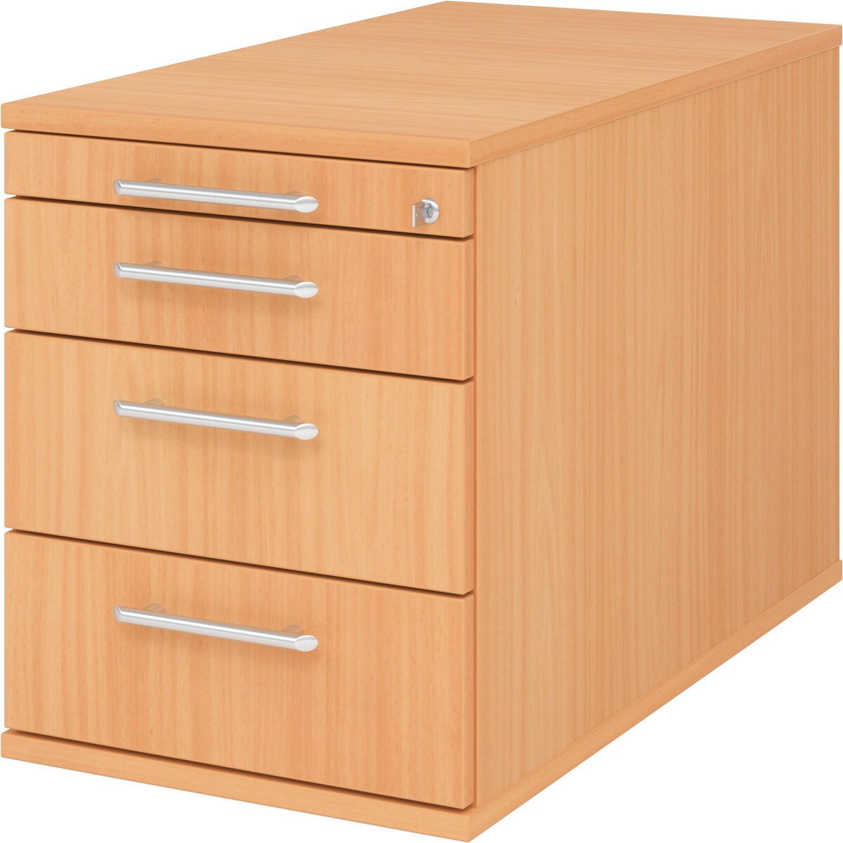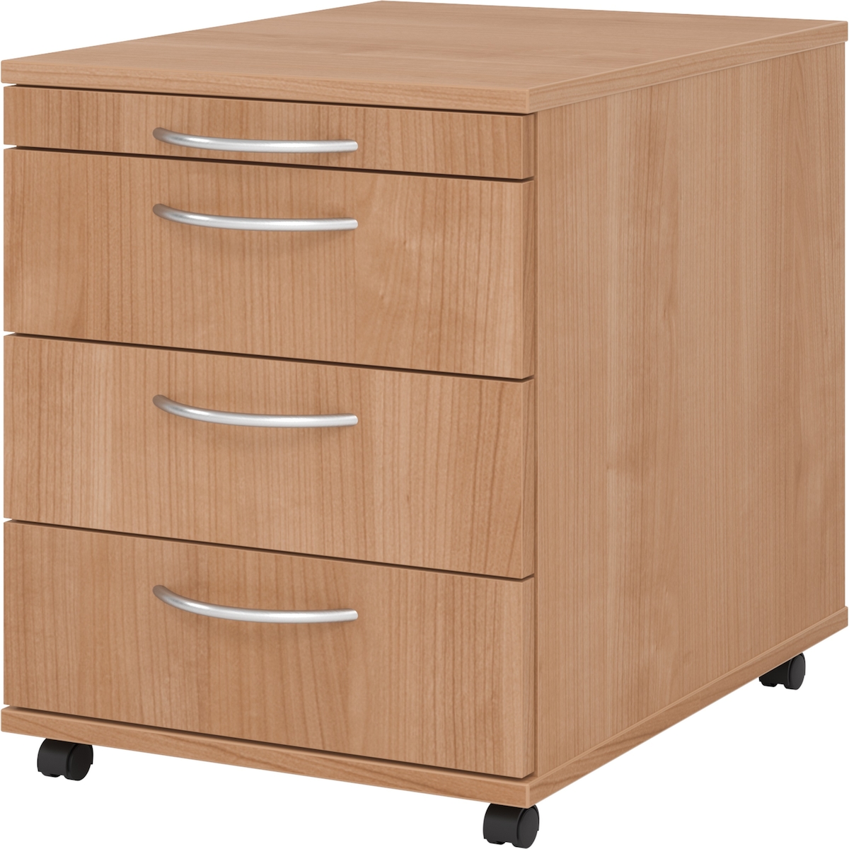 bümö basic Rollcontainer mit Schubladen, Container aus Holz in Buche - Rollwagen für's Büro als Schreibtisch Unterschrank, Bürocontainer od.