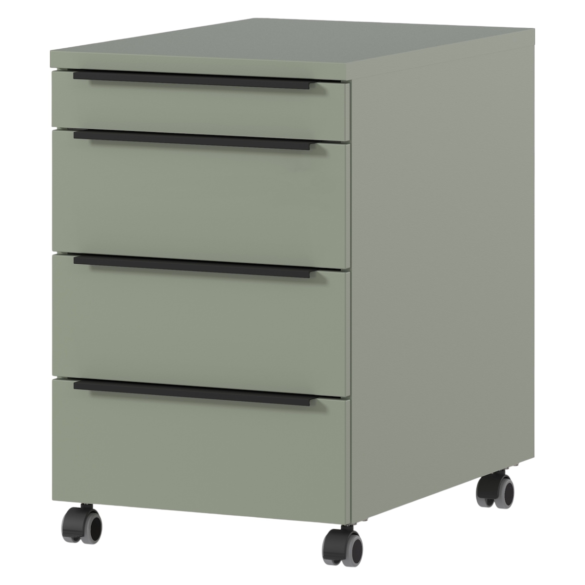 bümö Space Rollcontainer mit Schubladen, Container aus Holz in Taupe grün - Rollwagen für's Büro als Schreibtisch Unterschrank, Bürocontainer od.
