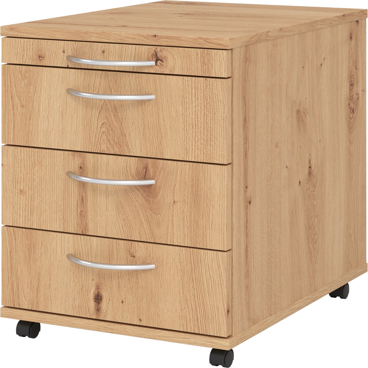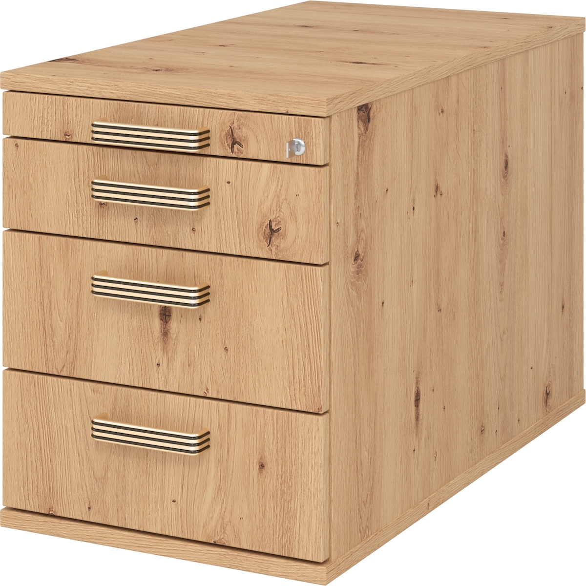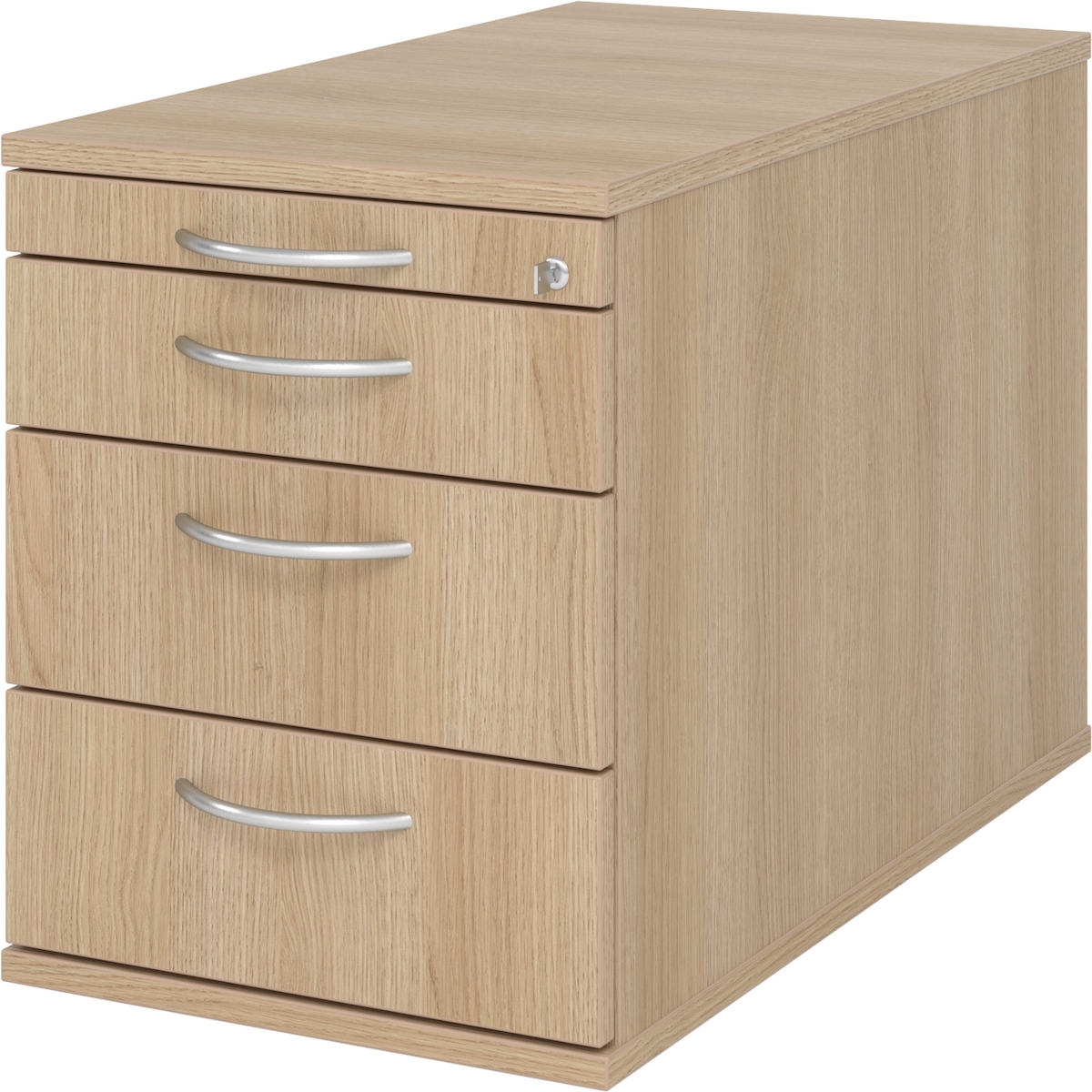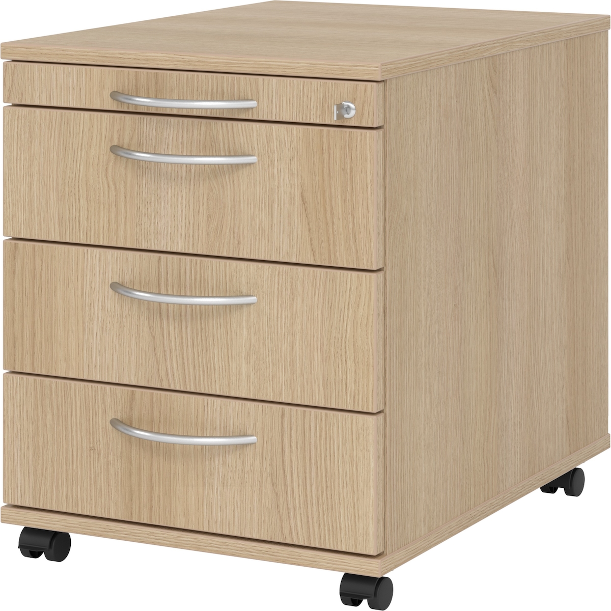 bümö Rollcontainer mit Schubladen, Container abschließbar aus Holz in Eiche - Rollwagen für's Büro als Schreibtisch Unterschrank, Bürocontainer od.
