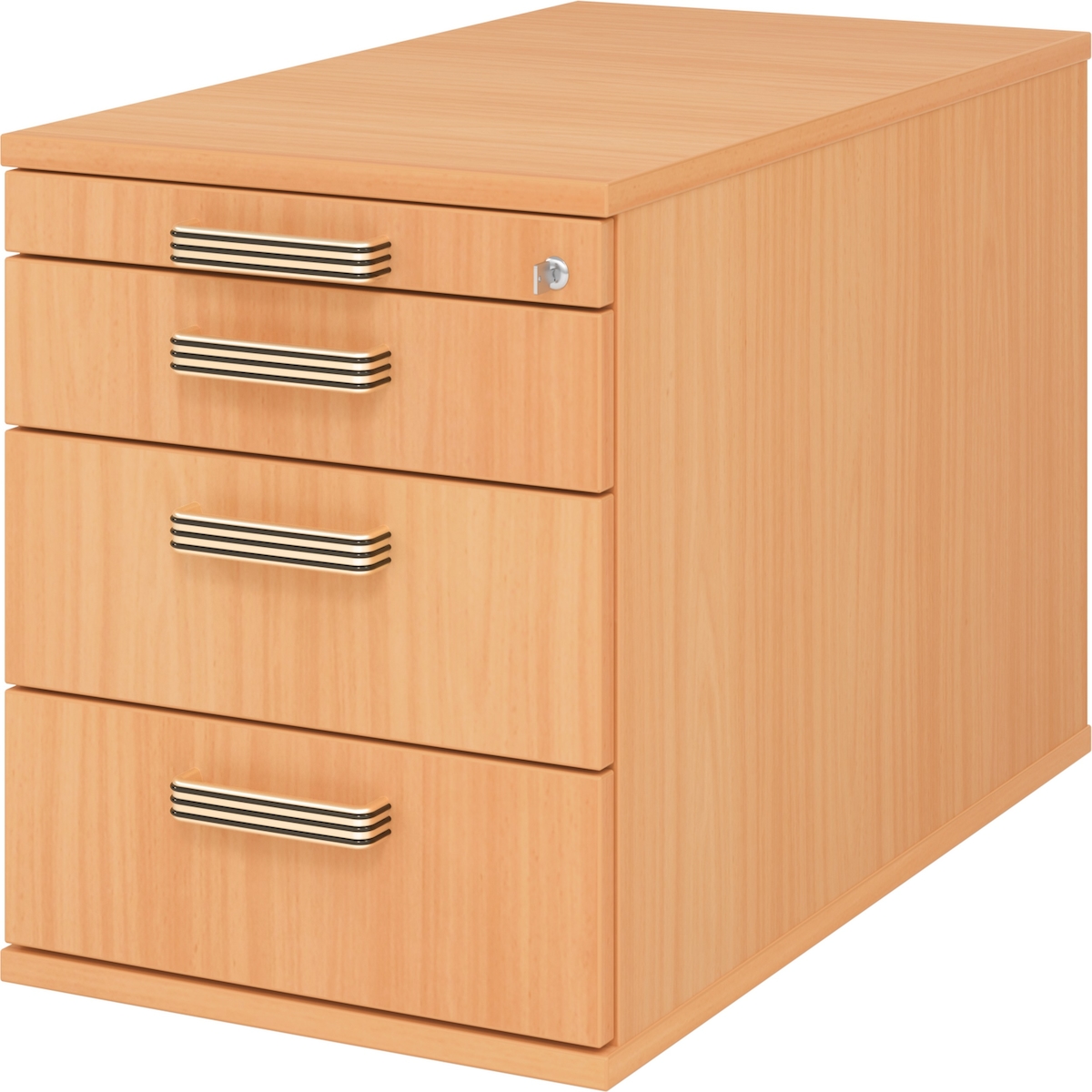 bümö Rollcontainer mit Schubladen, Container abschließbar aus Holz in Buche - Rollwagen für's Büro als Schreibtisch Unterschrank, Bürocontainer od.