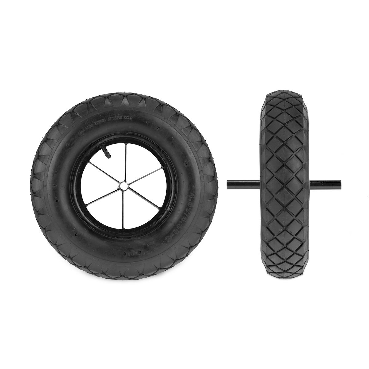 BKshop | Schubkarrenrad 4.00-8 - Vollgummi - Luftrad - 6PR - Ideal für Gartenarbeiten - Schubkarrenreifen - Rad für Schubkarre - mit Achse Ø20