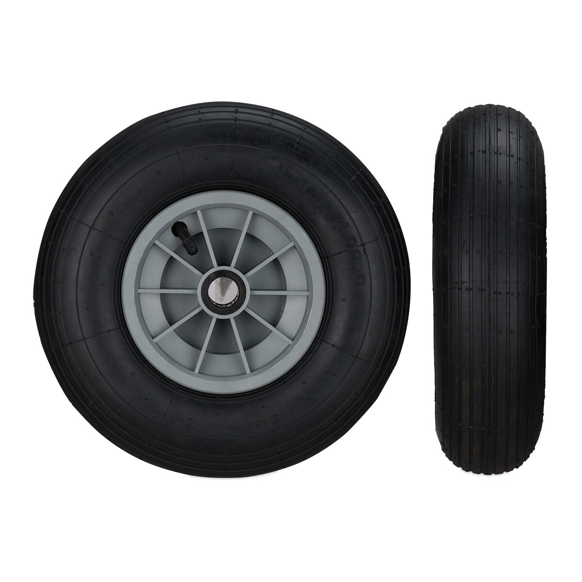 Relaxdays Schubkarrenrad, 4.00-6 Reifen, Kunststofffelge, luftbereift, 3 Adapter, Ersatzrad Schubkarre, schwarz-grau
