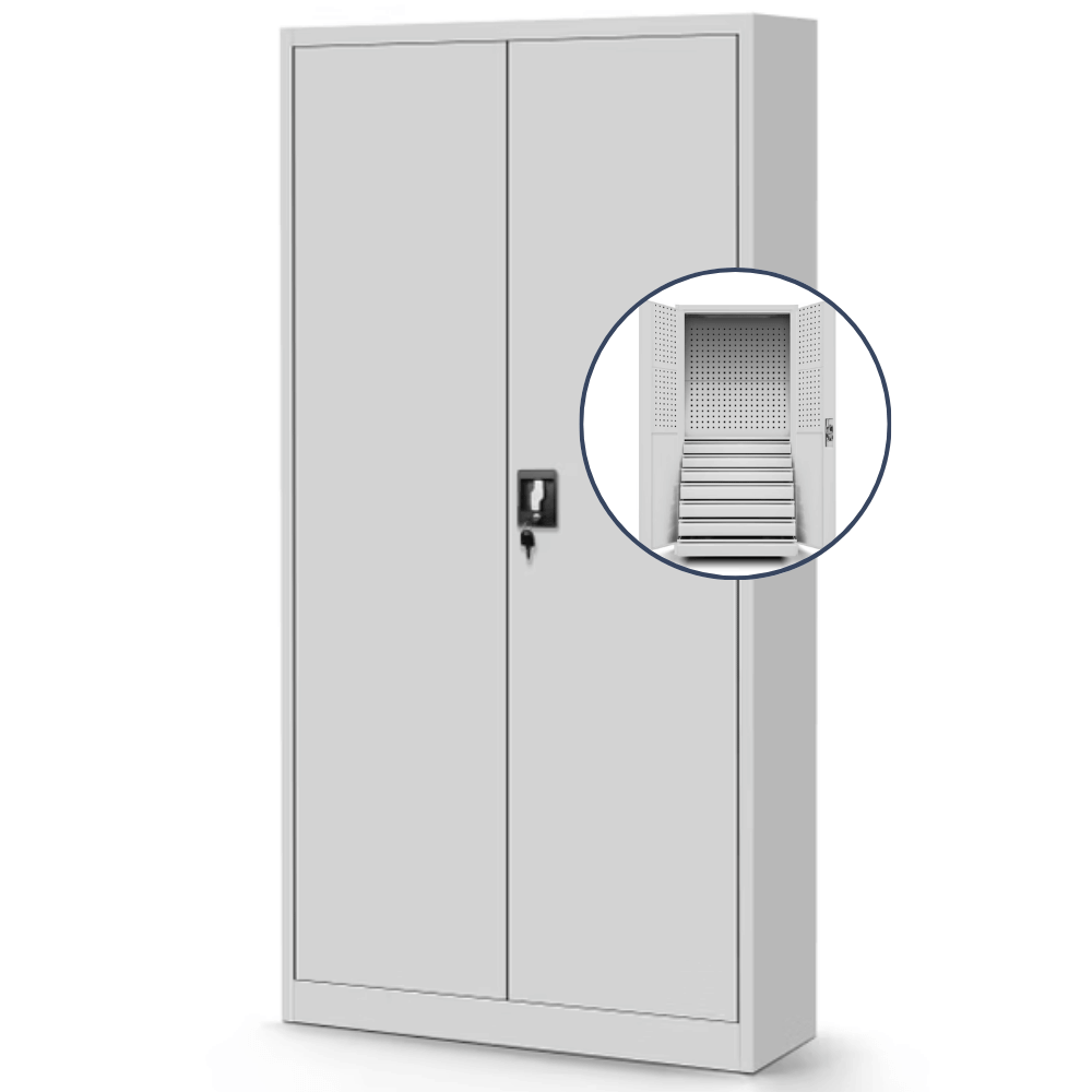Werkzeugschrank mit Schubladen TOM - inkl. Lochwand | Metallschrank mit Werkzeugwand Werkstattschrank Perforierte Rückwand, 185x92x50cm Grau
